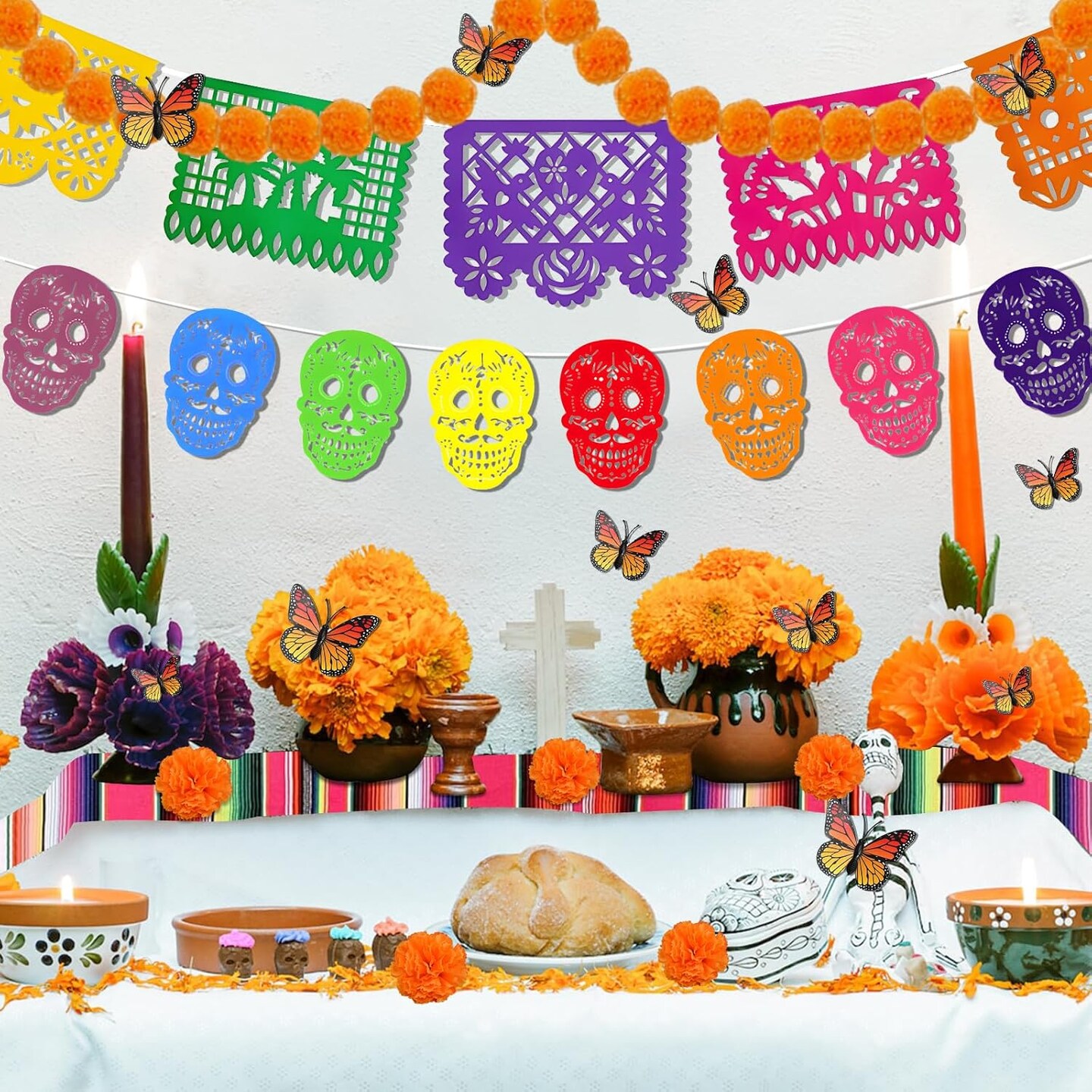 94 Pcs Dia De Los Muertos Decorations Ofrenda Set(Multi Color)