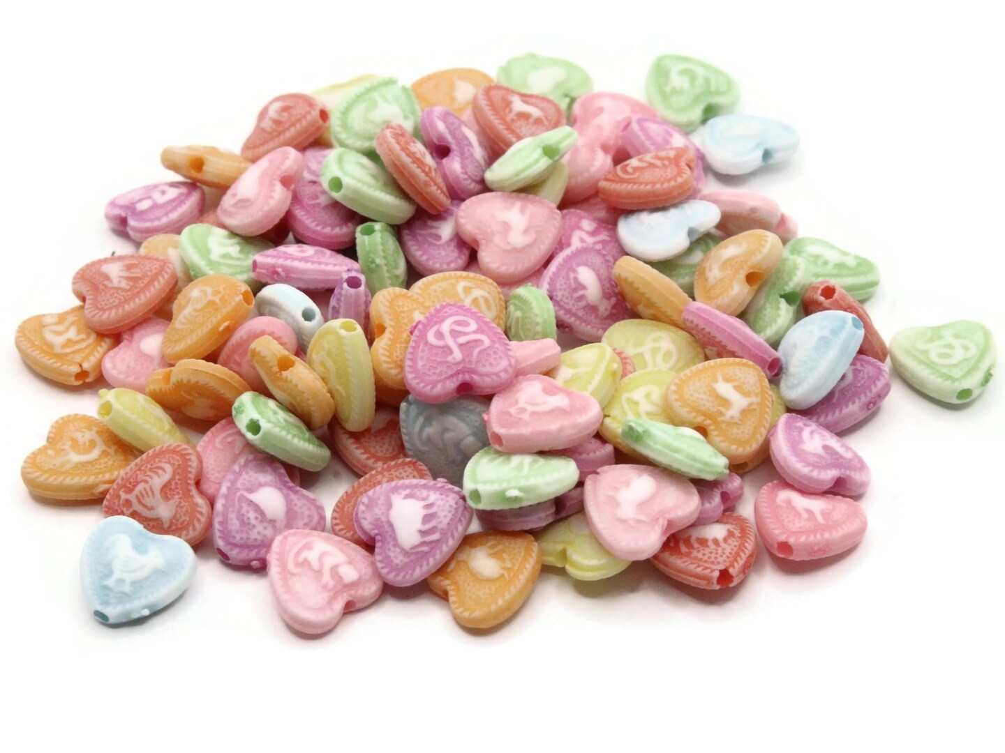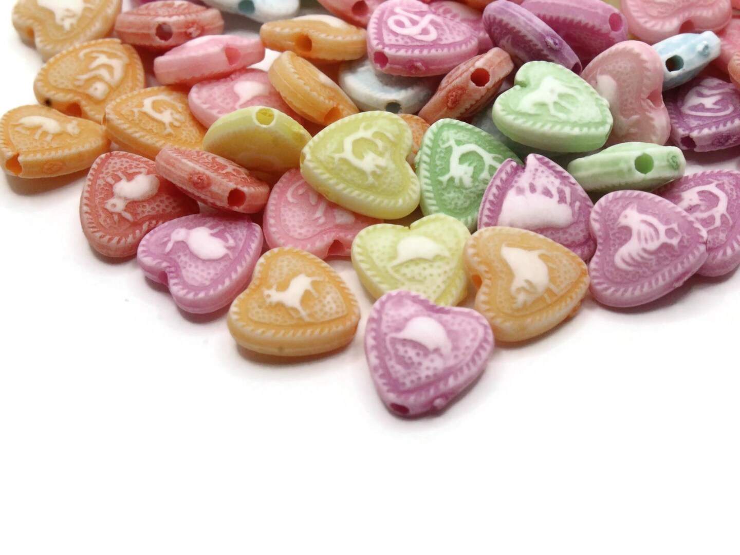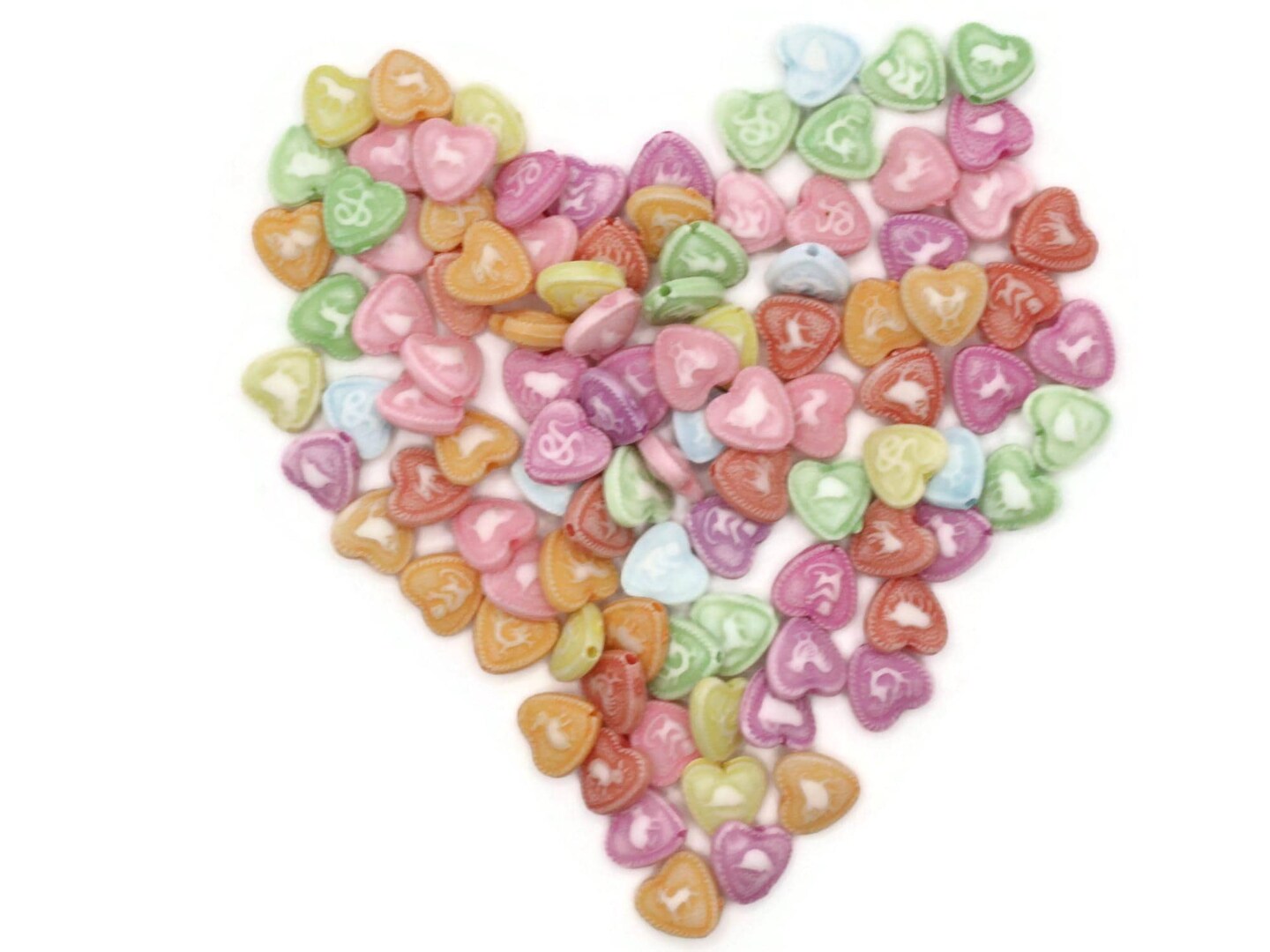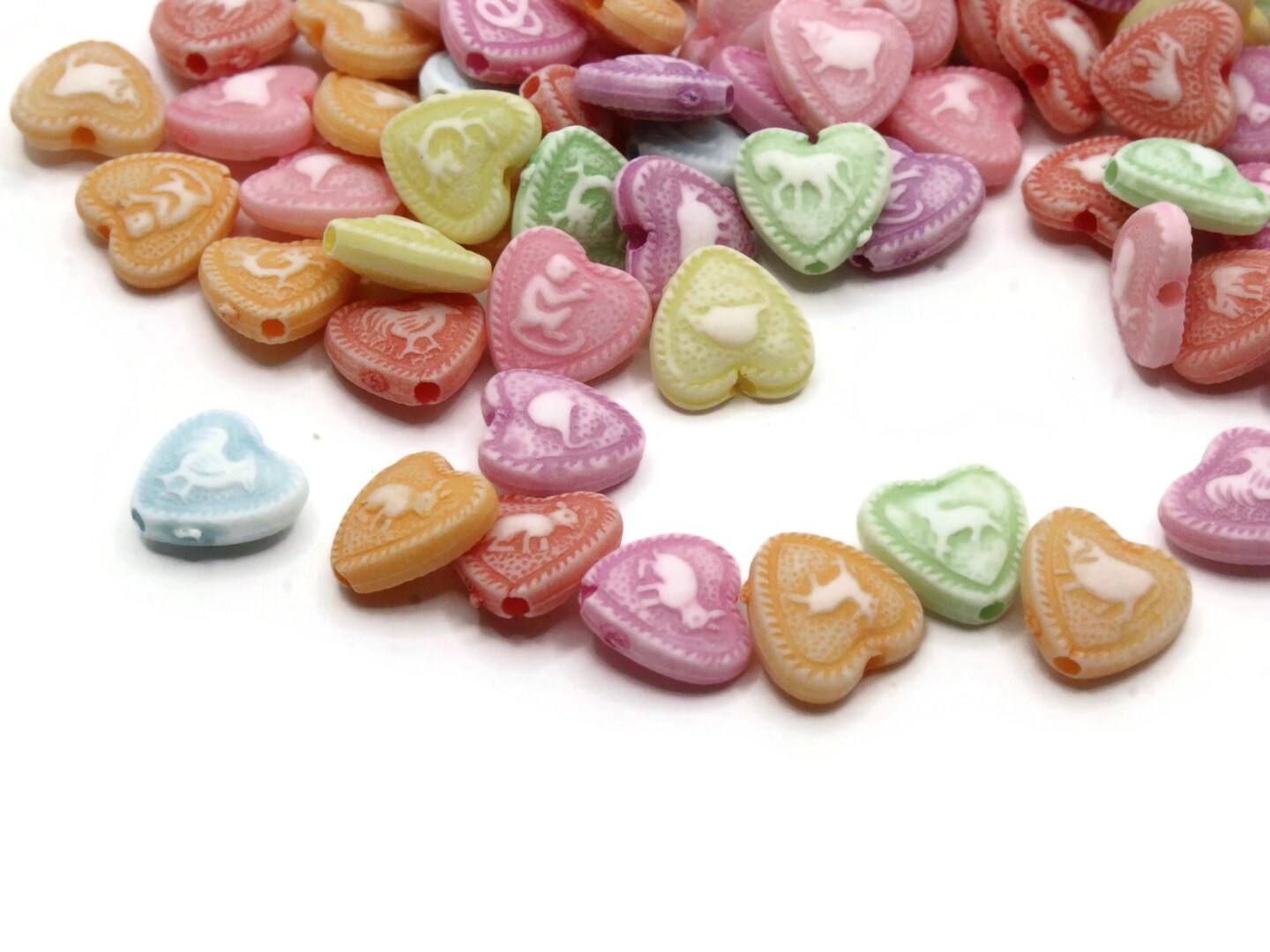 95 10mm Multi-Color Plastic Love Heart Beads with Animal Pictures