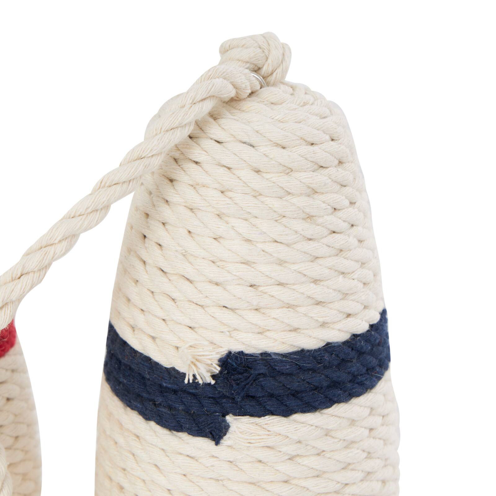 9.5" White Buoy Handmade Coiled Striped Rope Sculpture