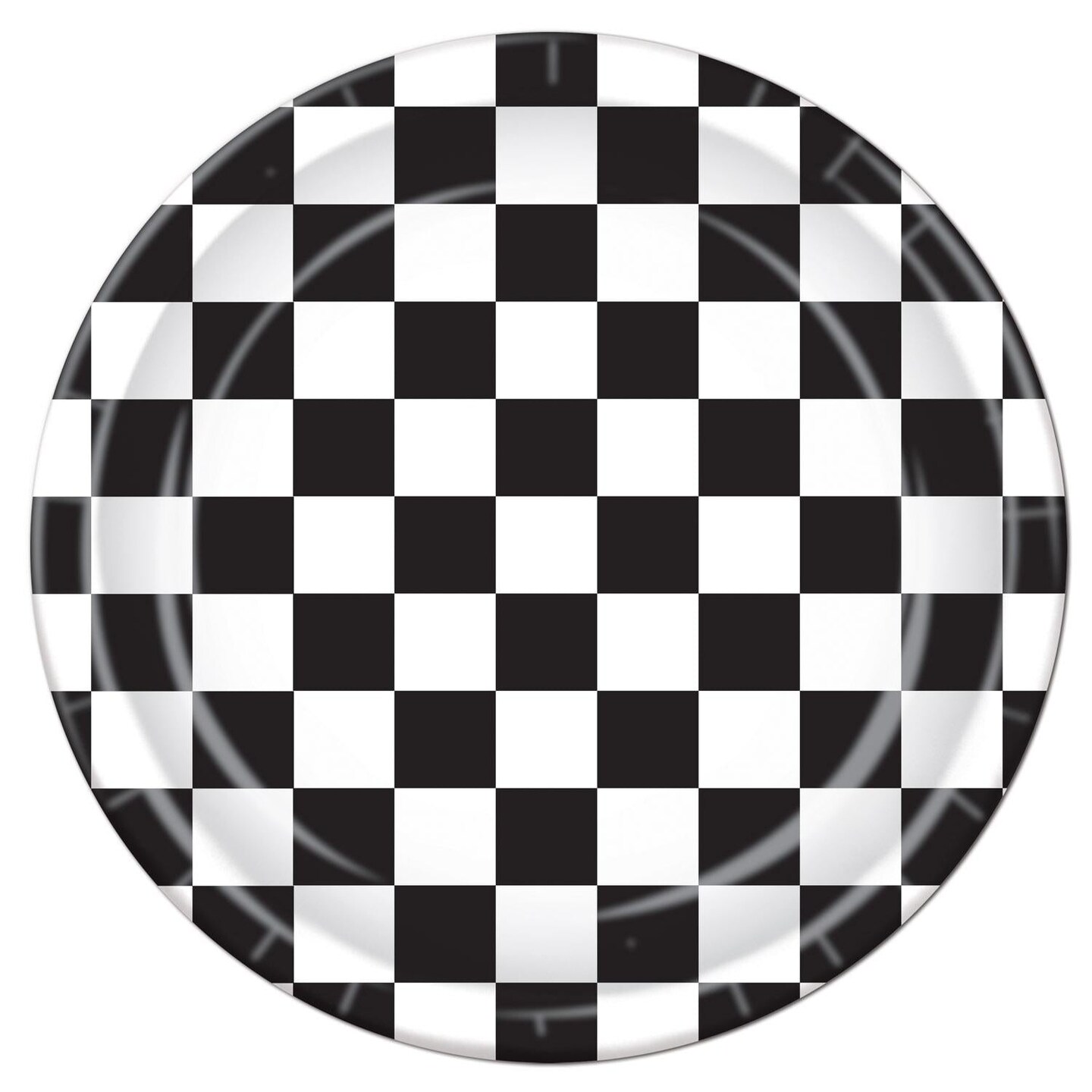 96 Pack Bulk Black and White Checkered Party Paper Plates 9 inch