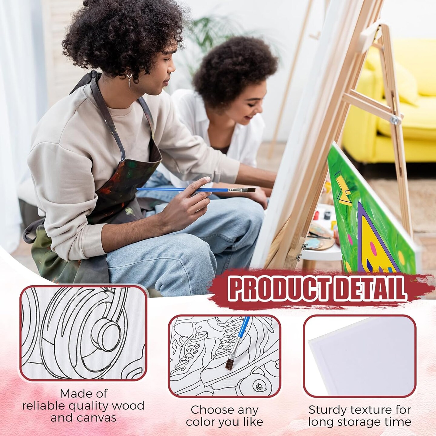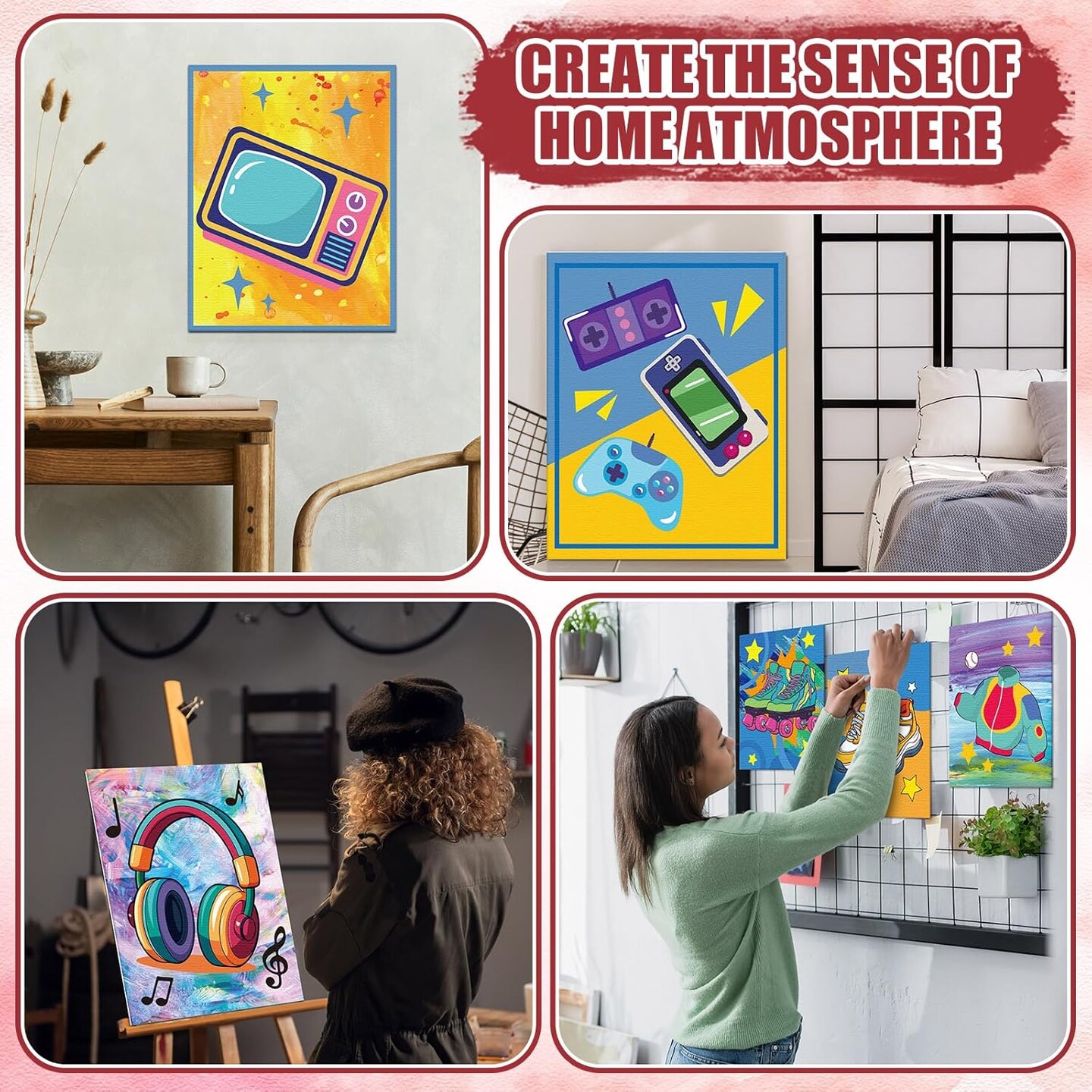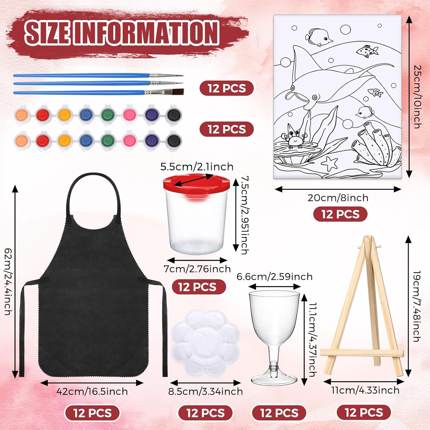 96 Pcs 12 Sets Pre Drawn Canvas Kit for Painting Craft Sip and Paint Kit for Adults Pre Printed Canvas Painting Favor for DIY Birthday Gifts Adult's Date Party, 8 x 10 Inches(Retro)