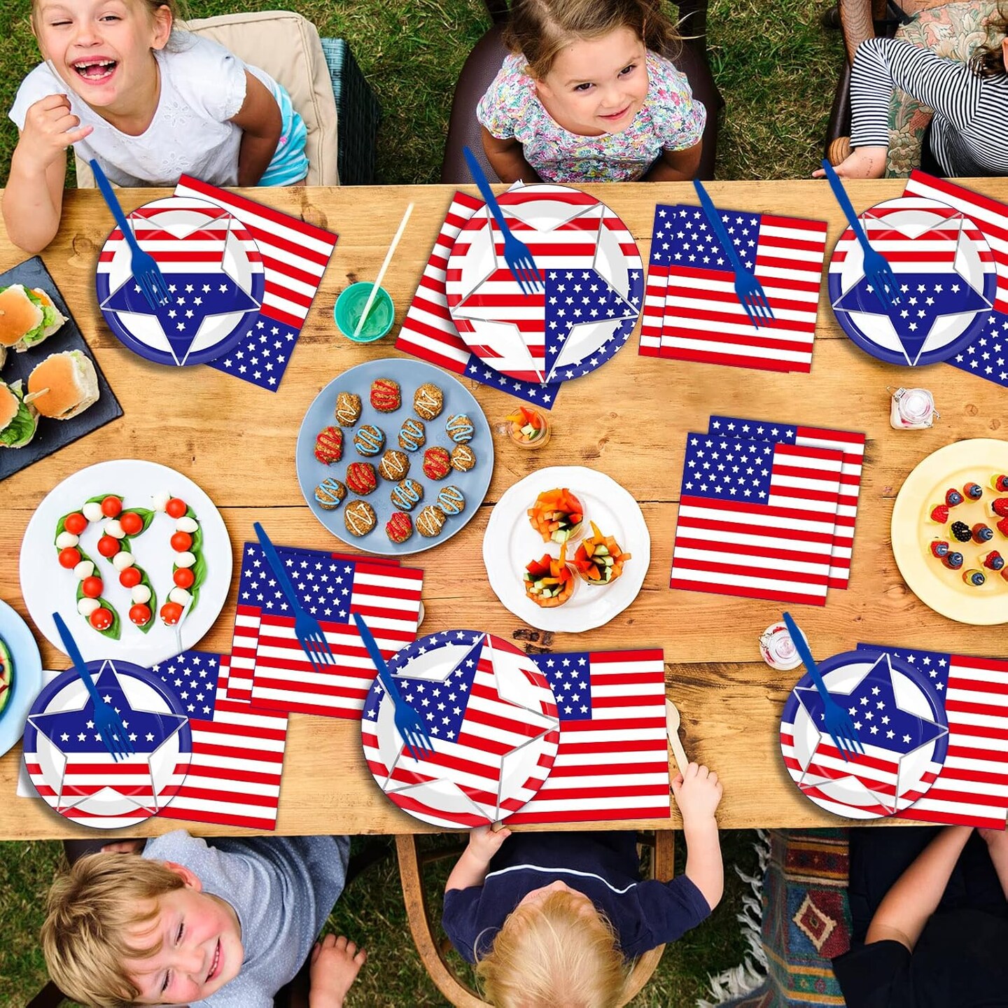 96 PCS 4th of July Party Set with Plates, Napkins, Tableware – American Flag Decor for 24 Guests