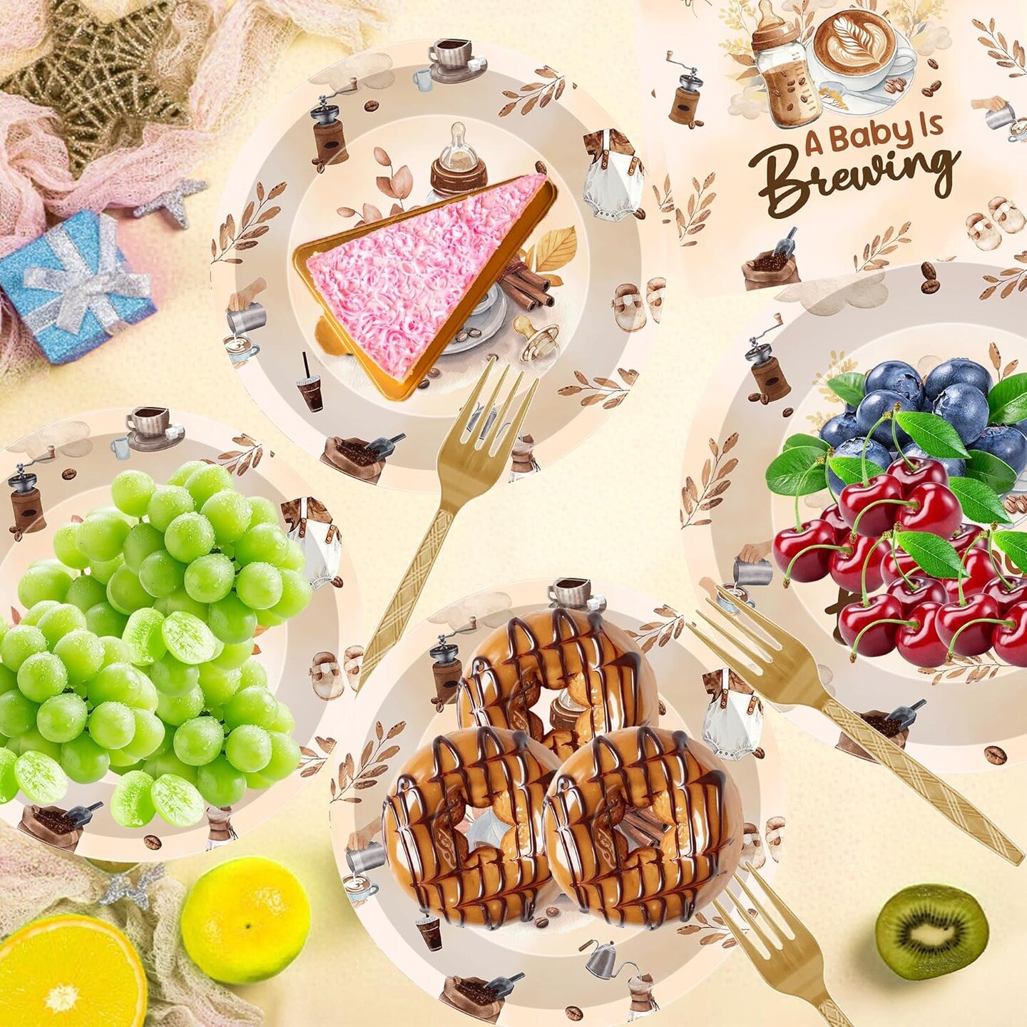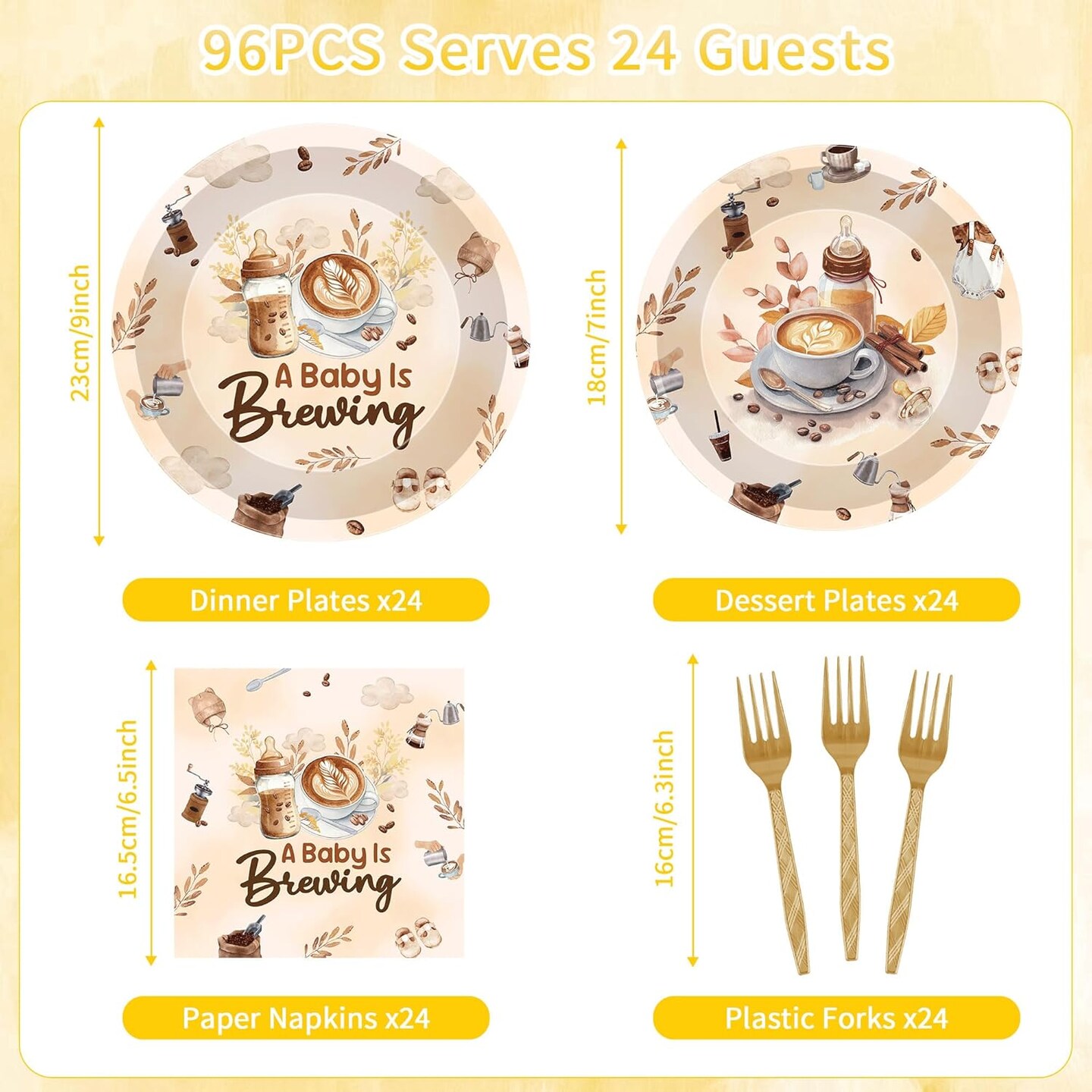 96 Pcs Baby Brewing Baby Shower Decorations Tableware Set Party Supplies