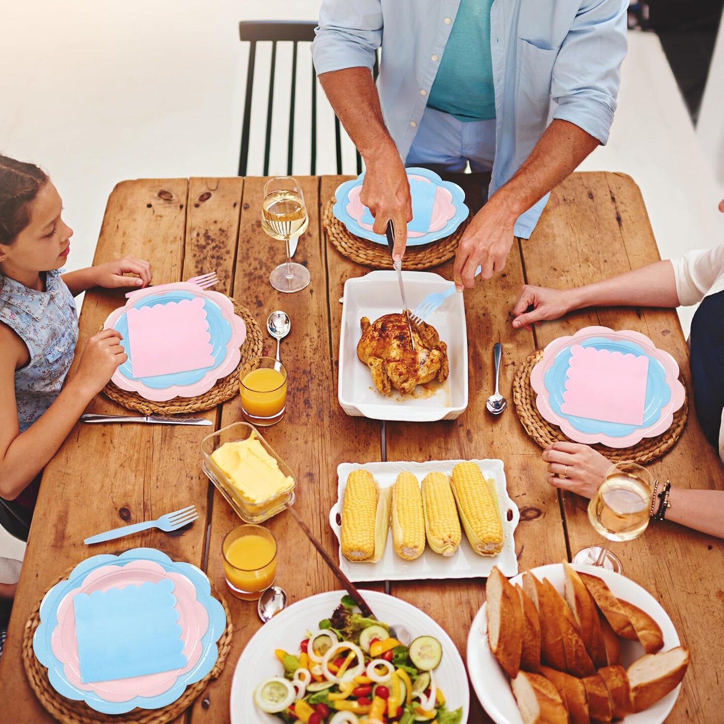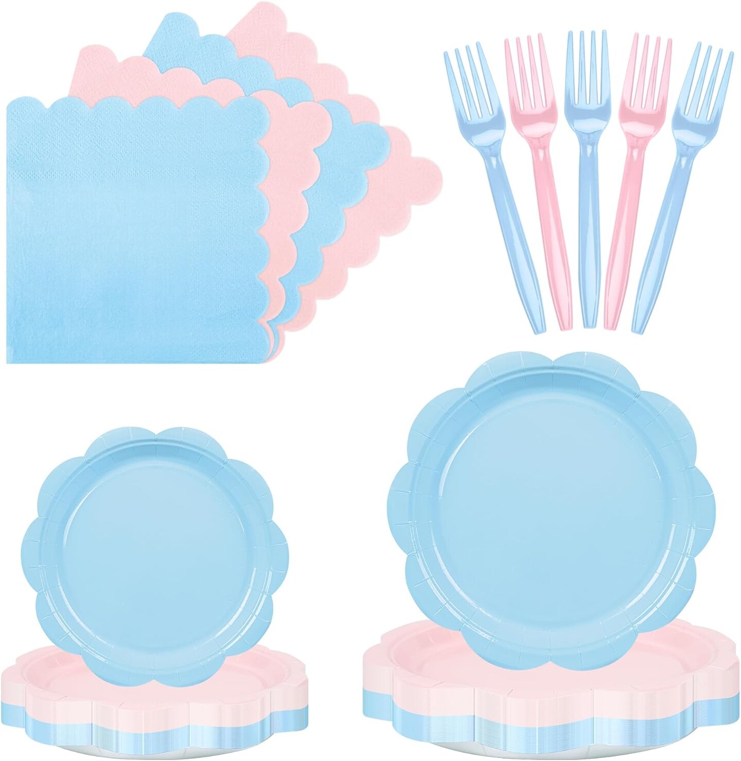 96 Pcs Baby Gender Reveal Scalloped Plates and Napkins Set Party Supplies,Tableware set for 24 Guest include Pink and Blue Dessert Plates, Napkins and Forks for Baby Shower Gender Reveal Party