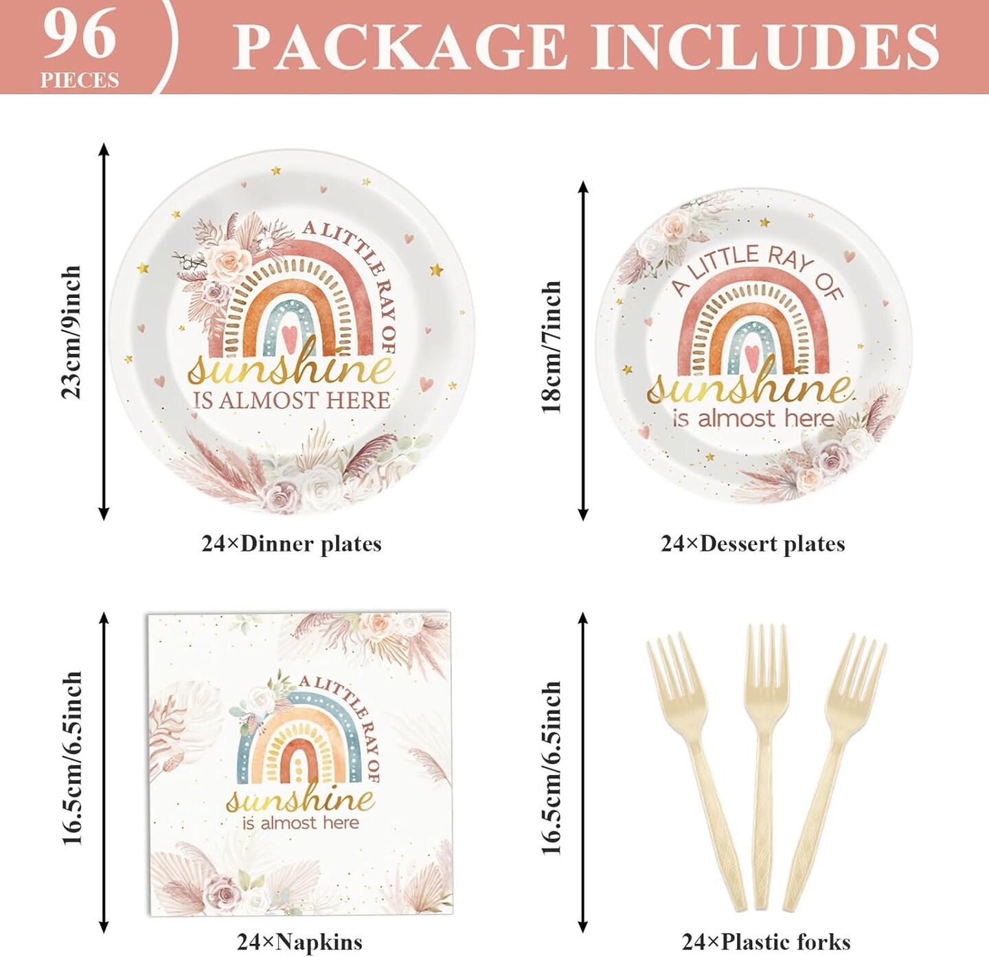 96 Pcs Boho Rainbow Party Decorations