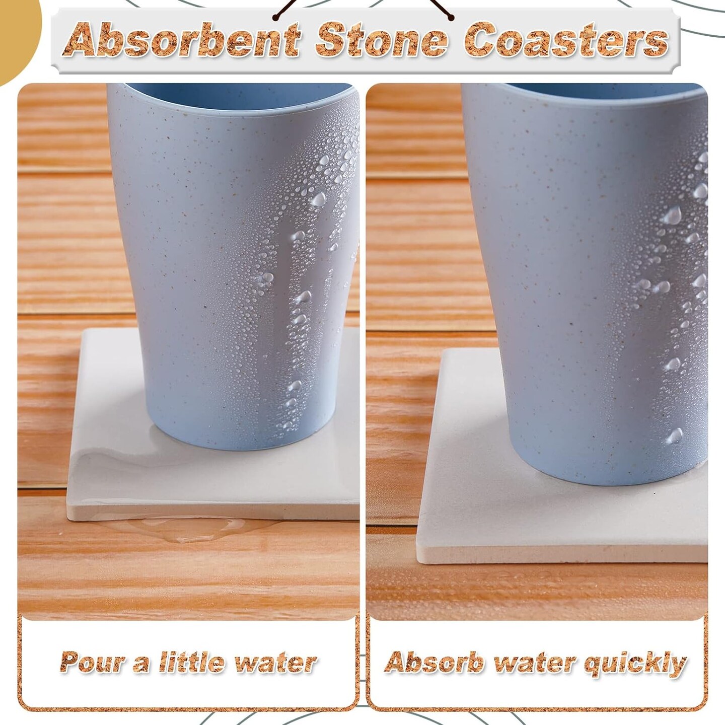 96 Pcs Ceramic Tiles for Crafts Coasters, Ceramic Tiles, Include 48 Unglazed White Tiles with 48 Cork Backing Pads Use with Alcohol Ink Acrylic Pouring for DIY Project Gift (Square, Round)