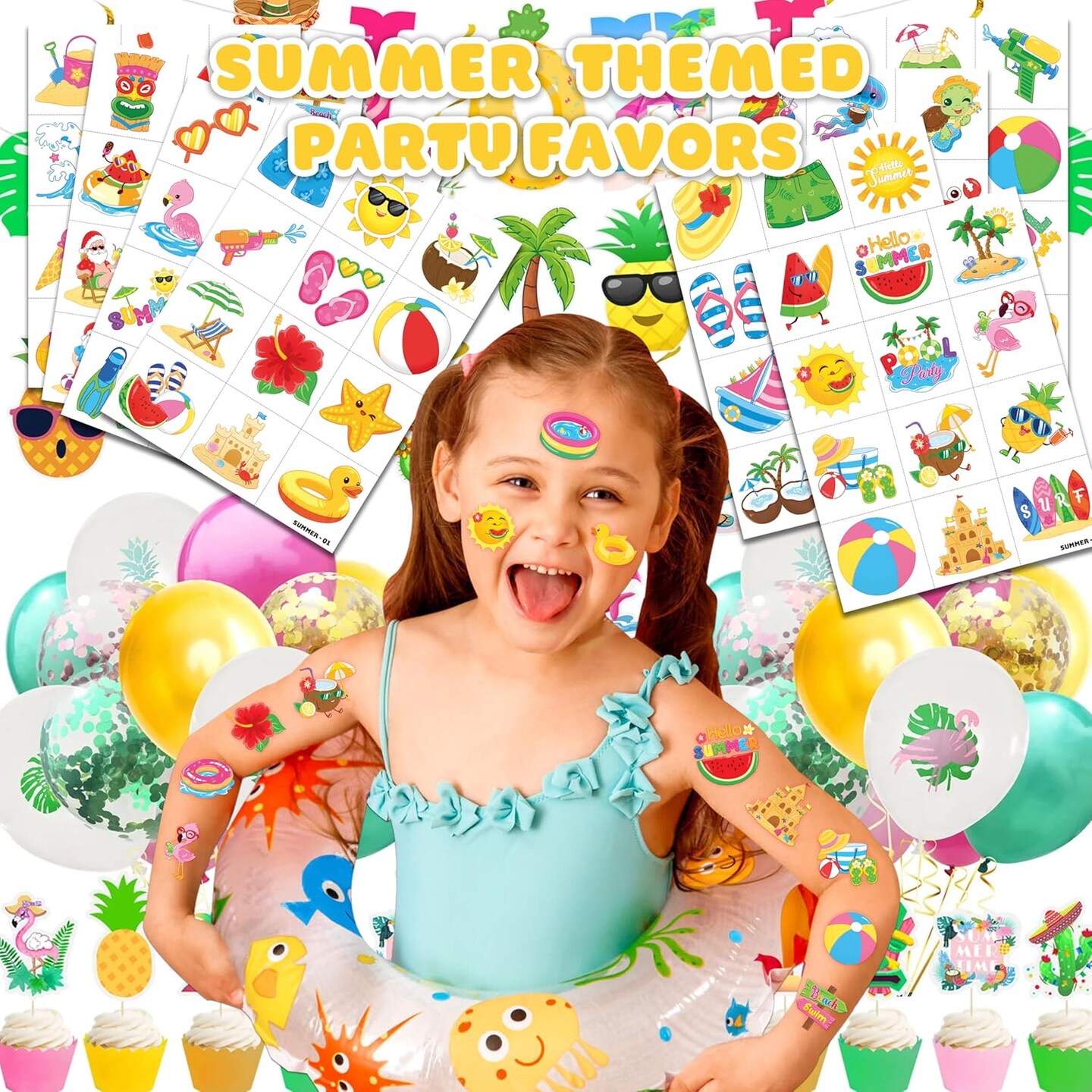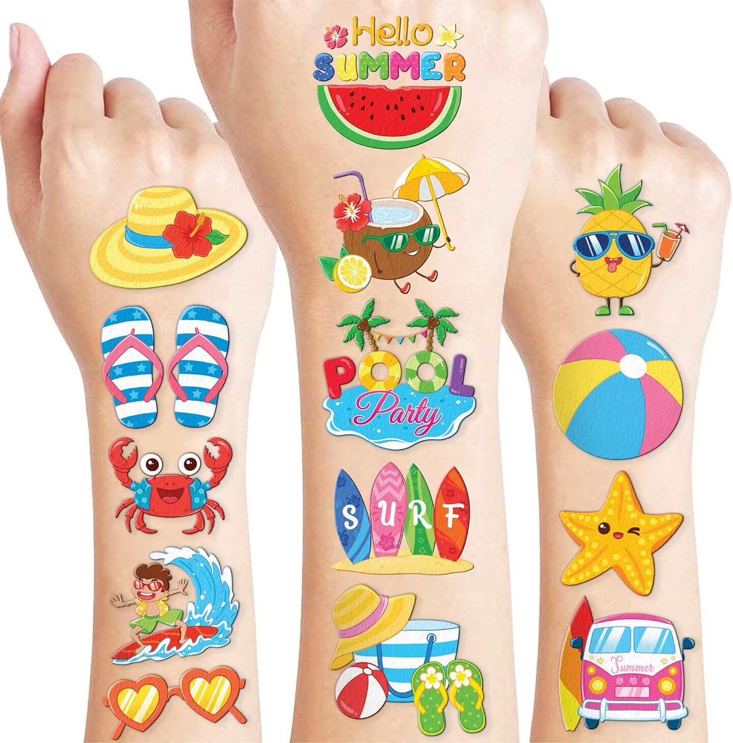 96 PCS Hello Summer Hawaiian Temporary Tattoo Stickers
