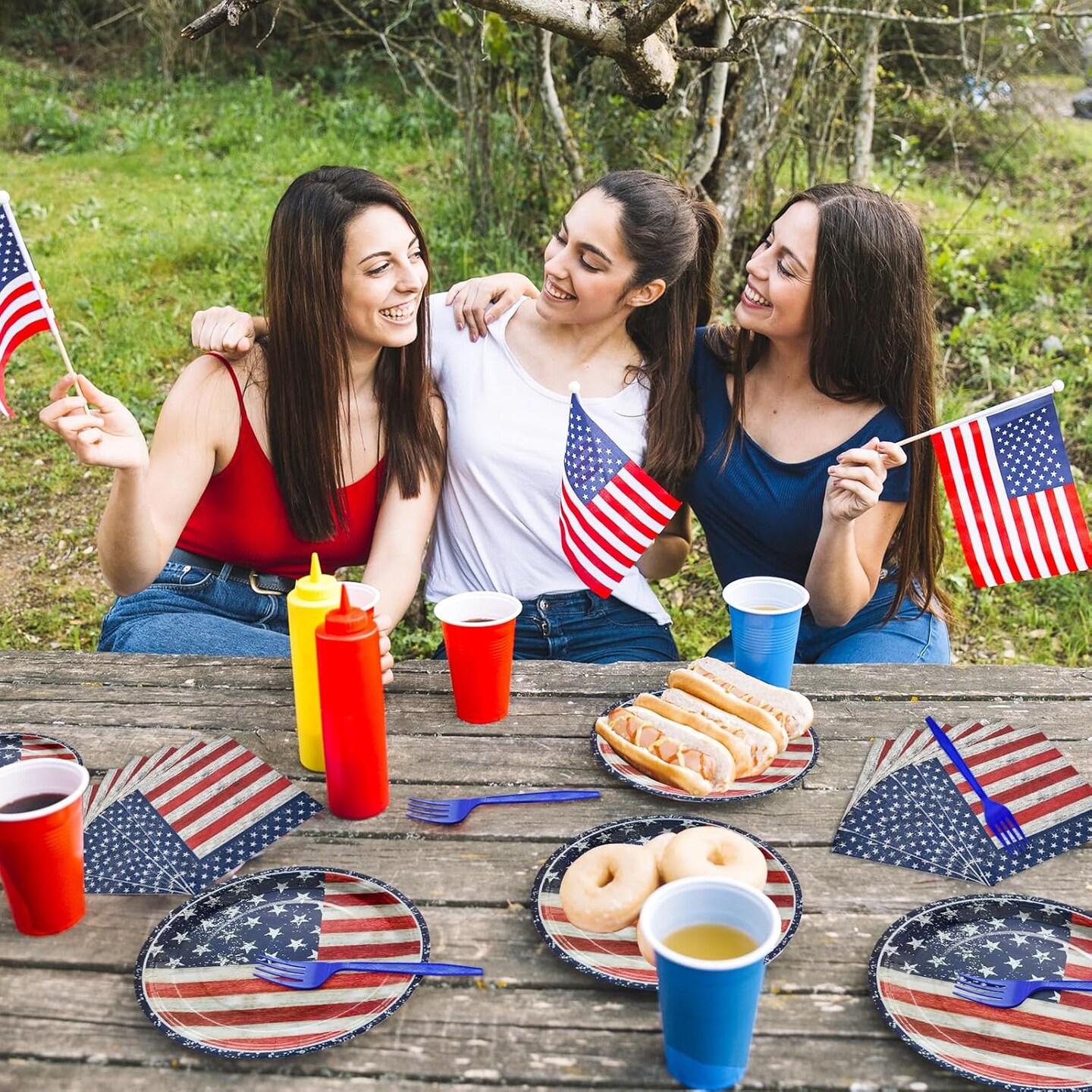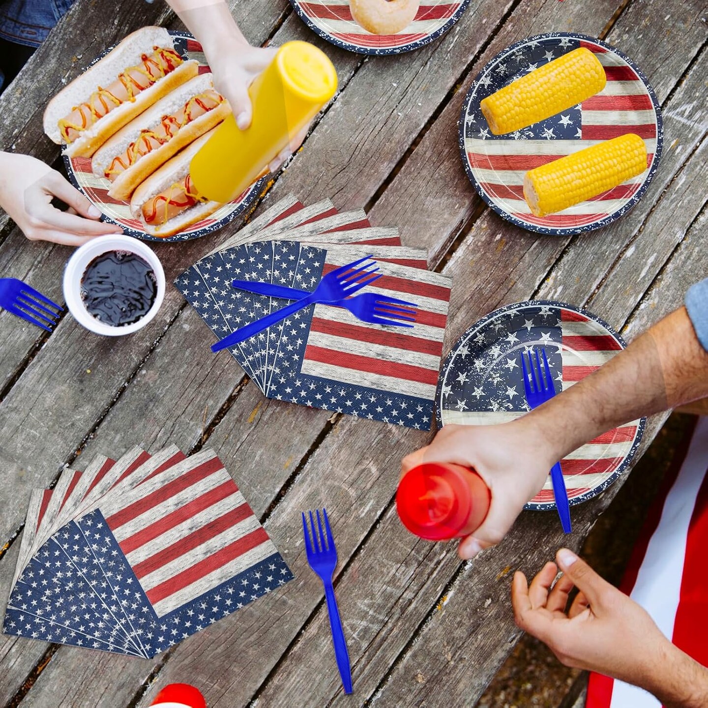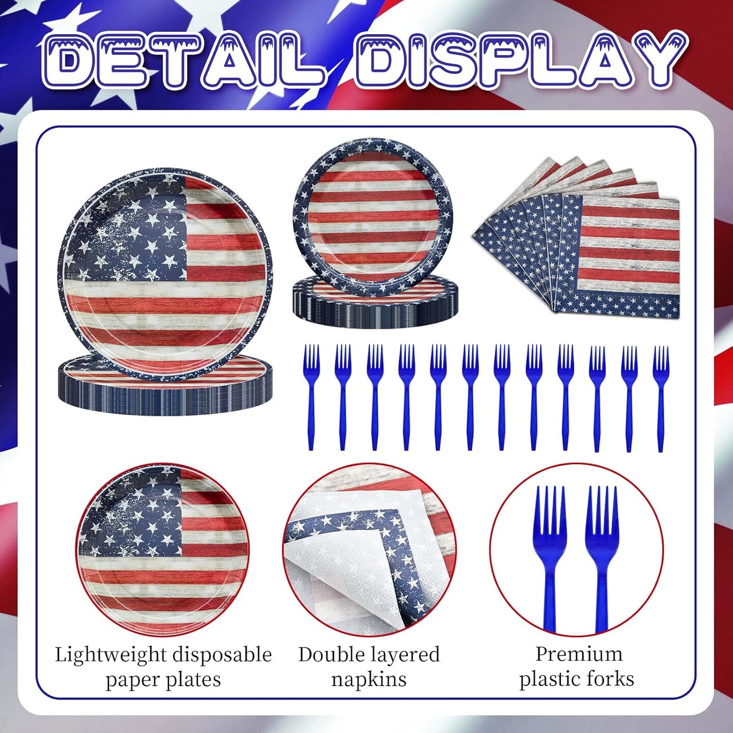 96 PCS Patriotic Tableware Set with Plates Napkins Forks American Flag Design for 4th of July