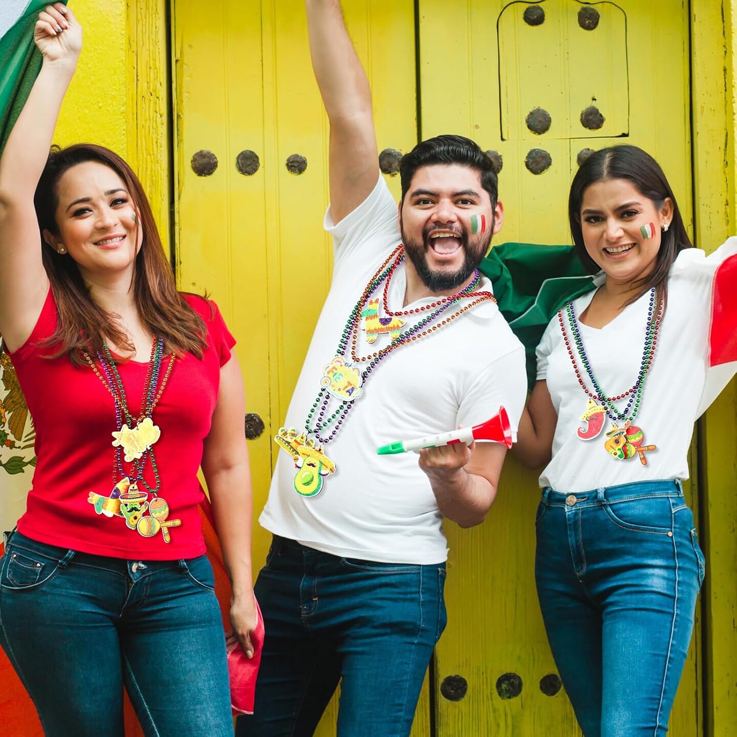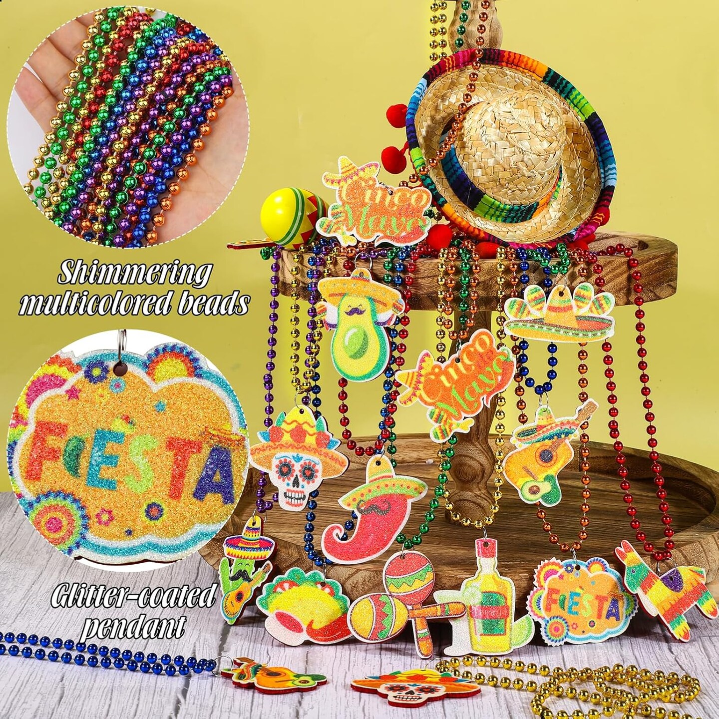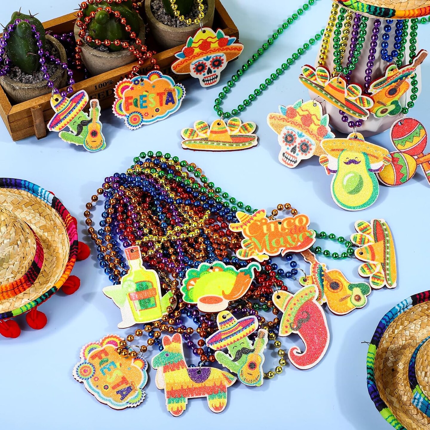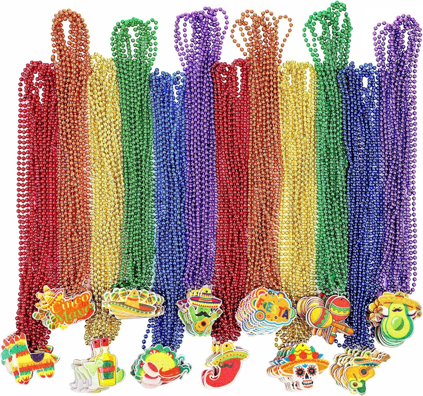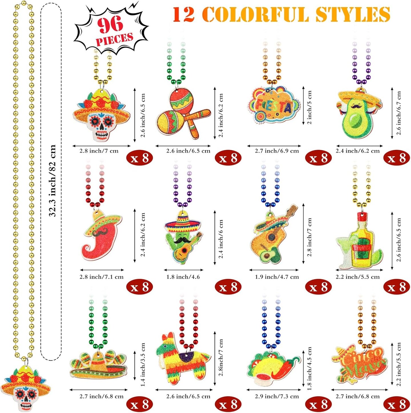 96 Pieces Cinco de Mayo Necklaces Bead Mexican Party Favors Necklaces Fiesta Accessories for Mexican Party Favors Decorations Parade Carnivals Birthday