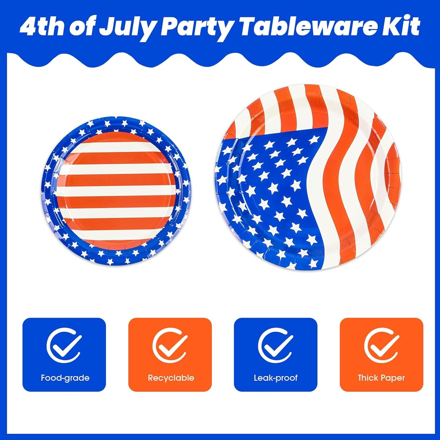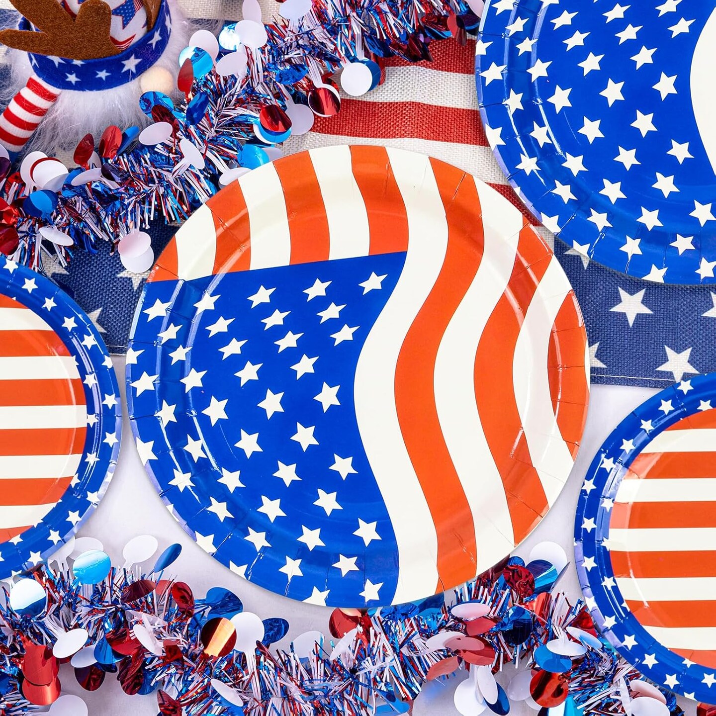 96PCS 4th of July Paper Plates and Napkins, American Flag Patriotic Party Supplies