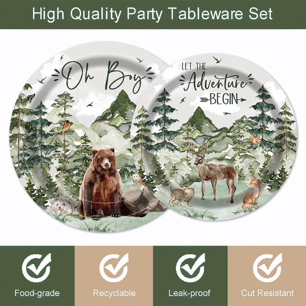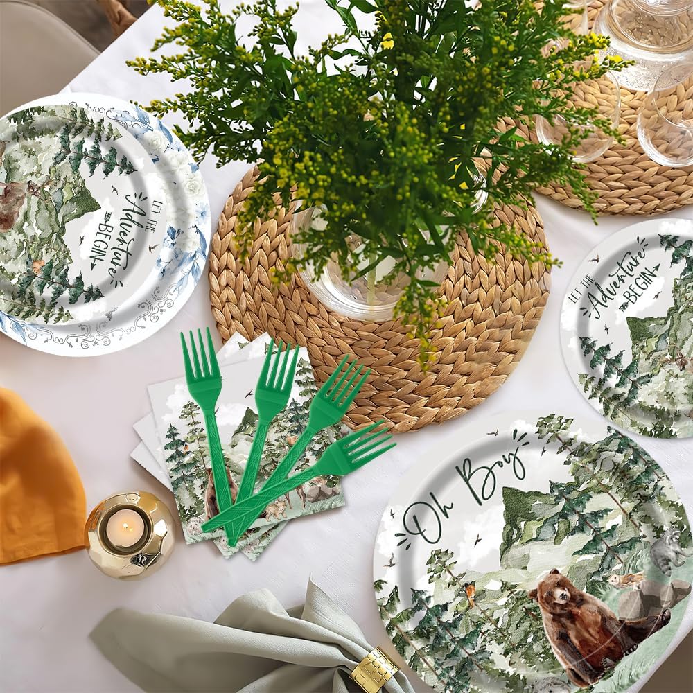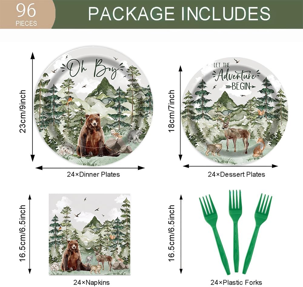 96Pcs Boy Baby Shower Adventure Party Tableware Supplies - Serve 24 Guests