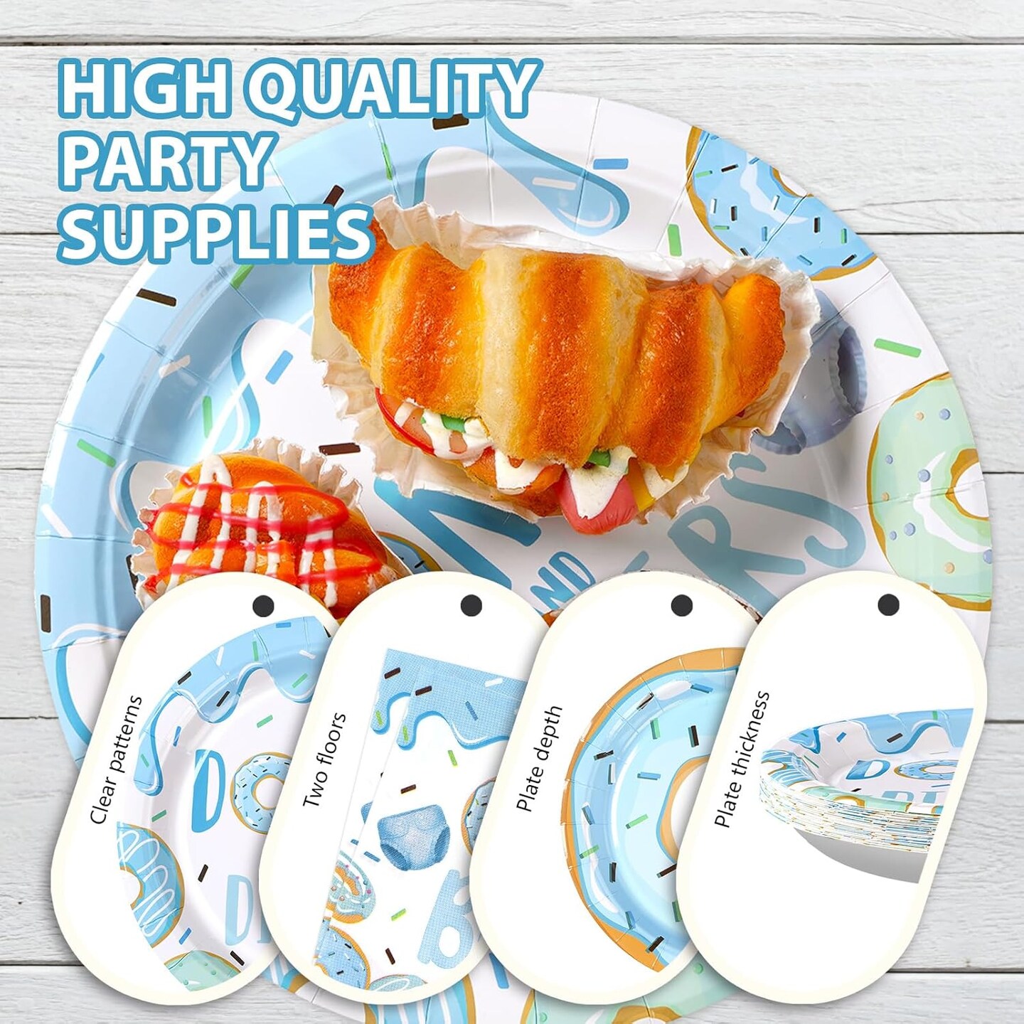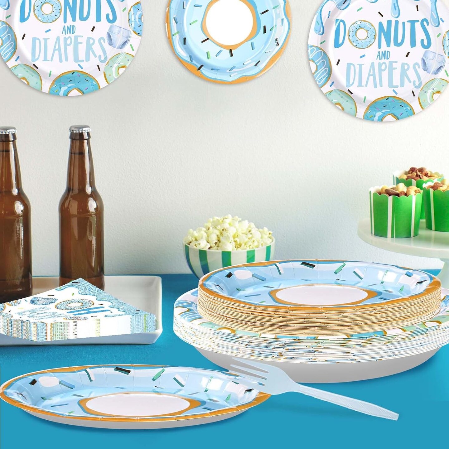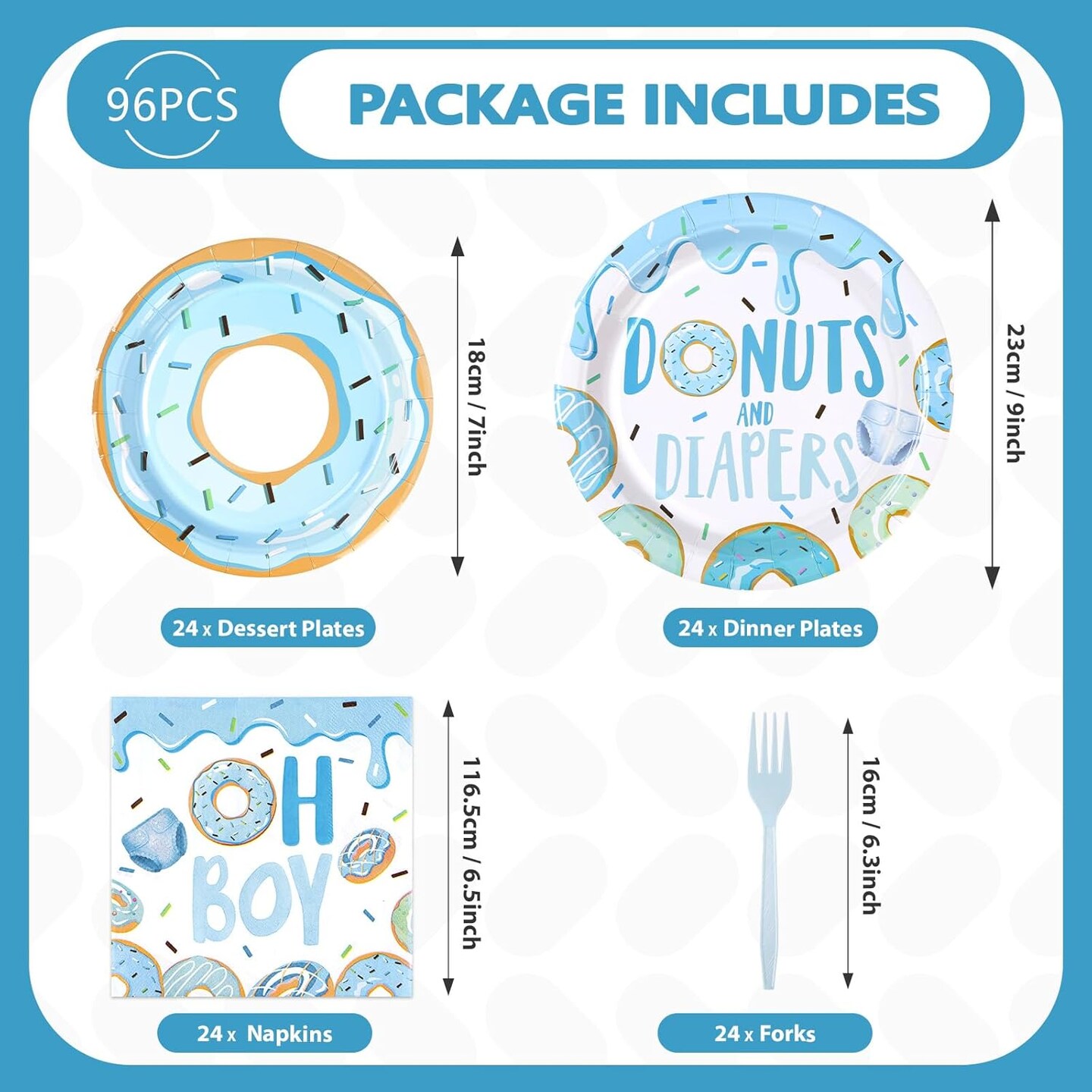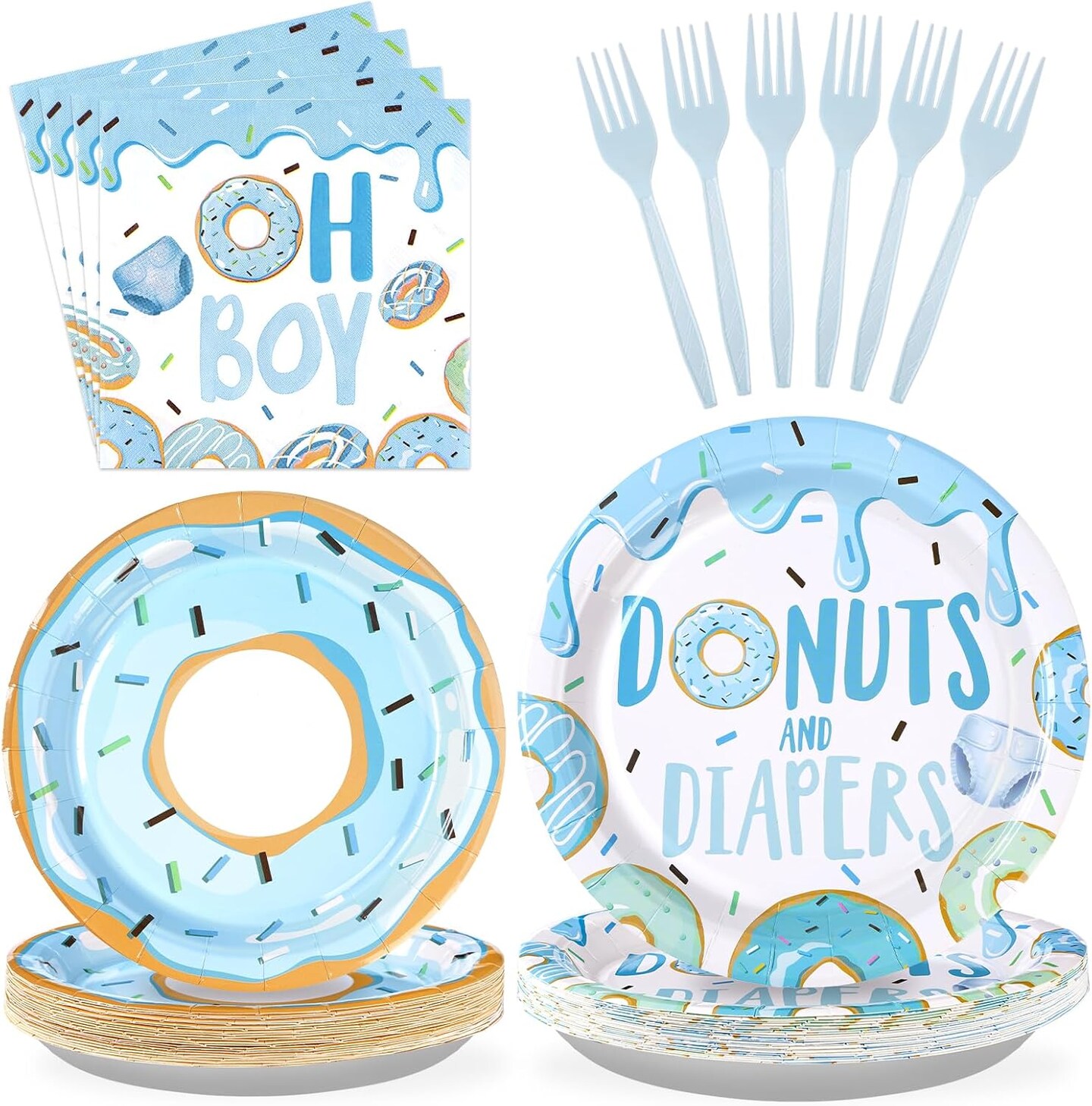 96Pcs Donuts Baby Shower Tableware Set - Serves 24 (Blue)