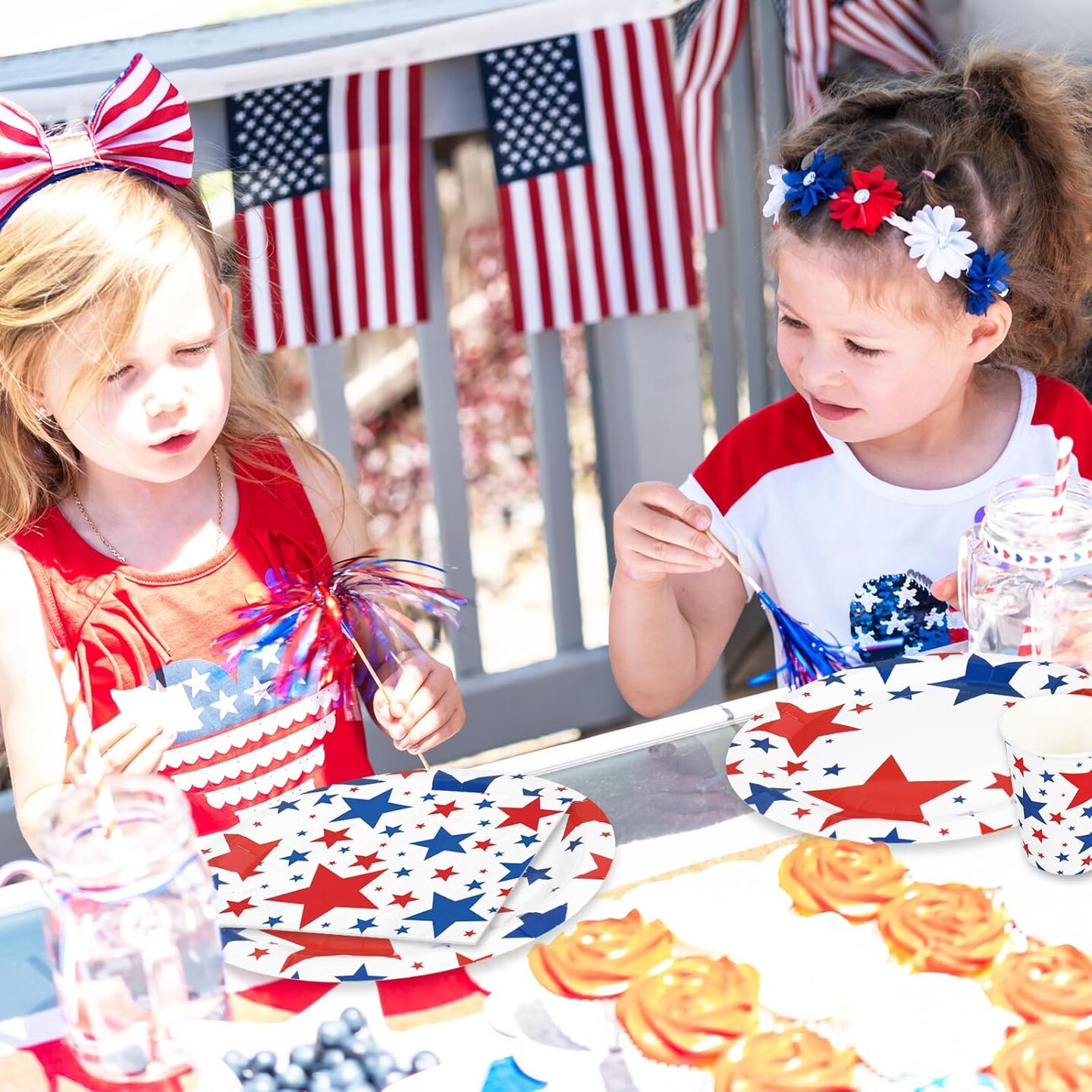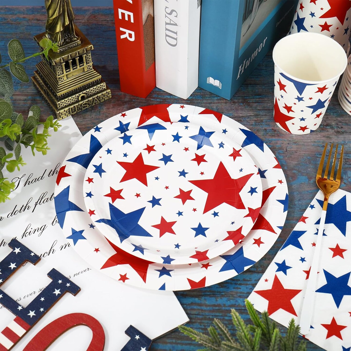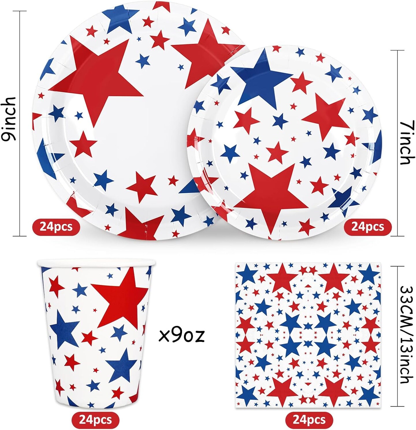 96PCS Patriotic Tableware Set – Plates, Cups, Napkins – 4th of July Decor for 24 Guests
