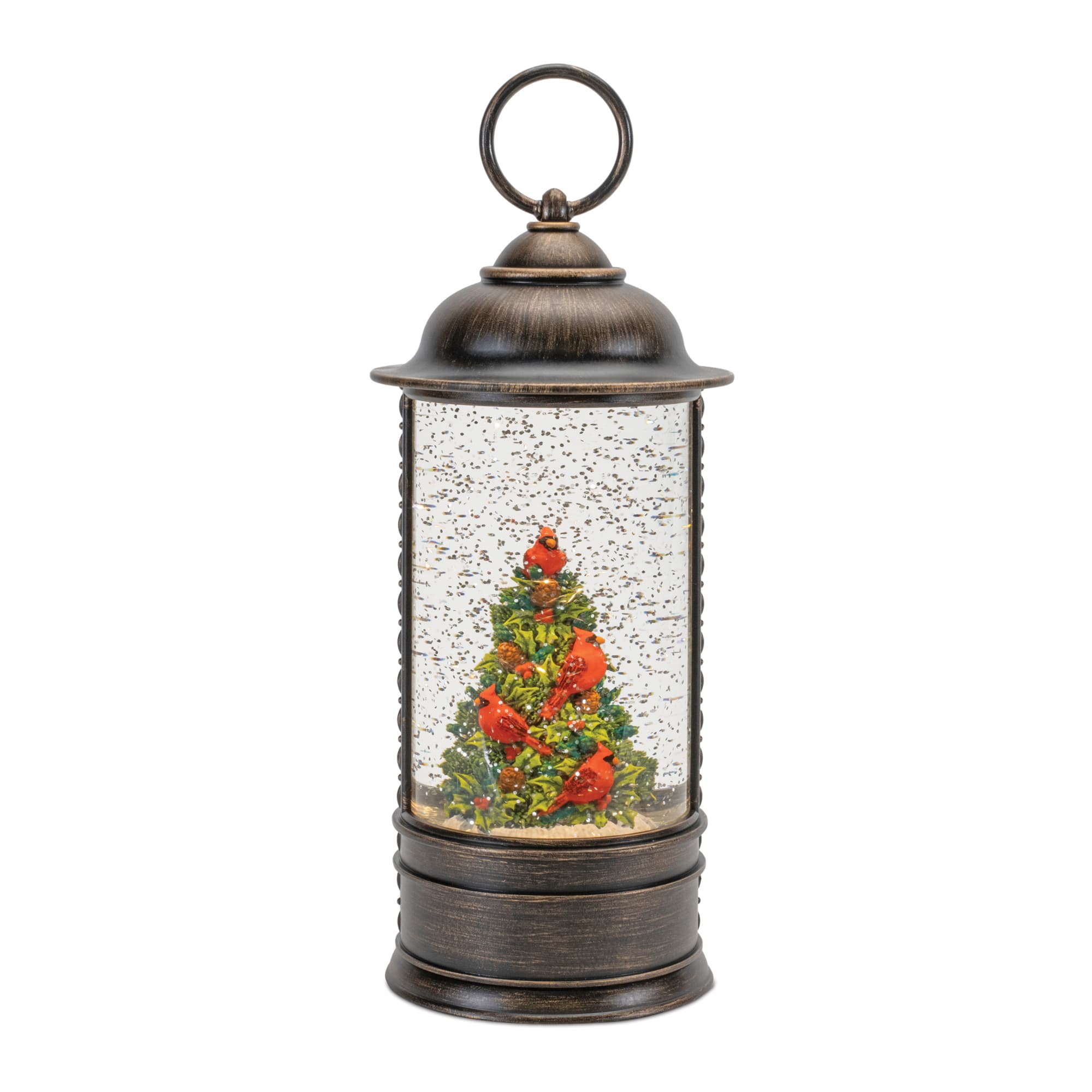 9.75" LED Snow Globe Lantern with Cardinal Holly Tree