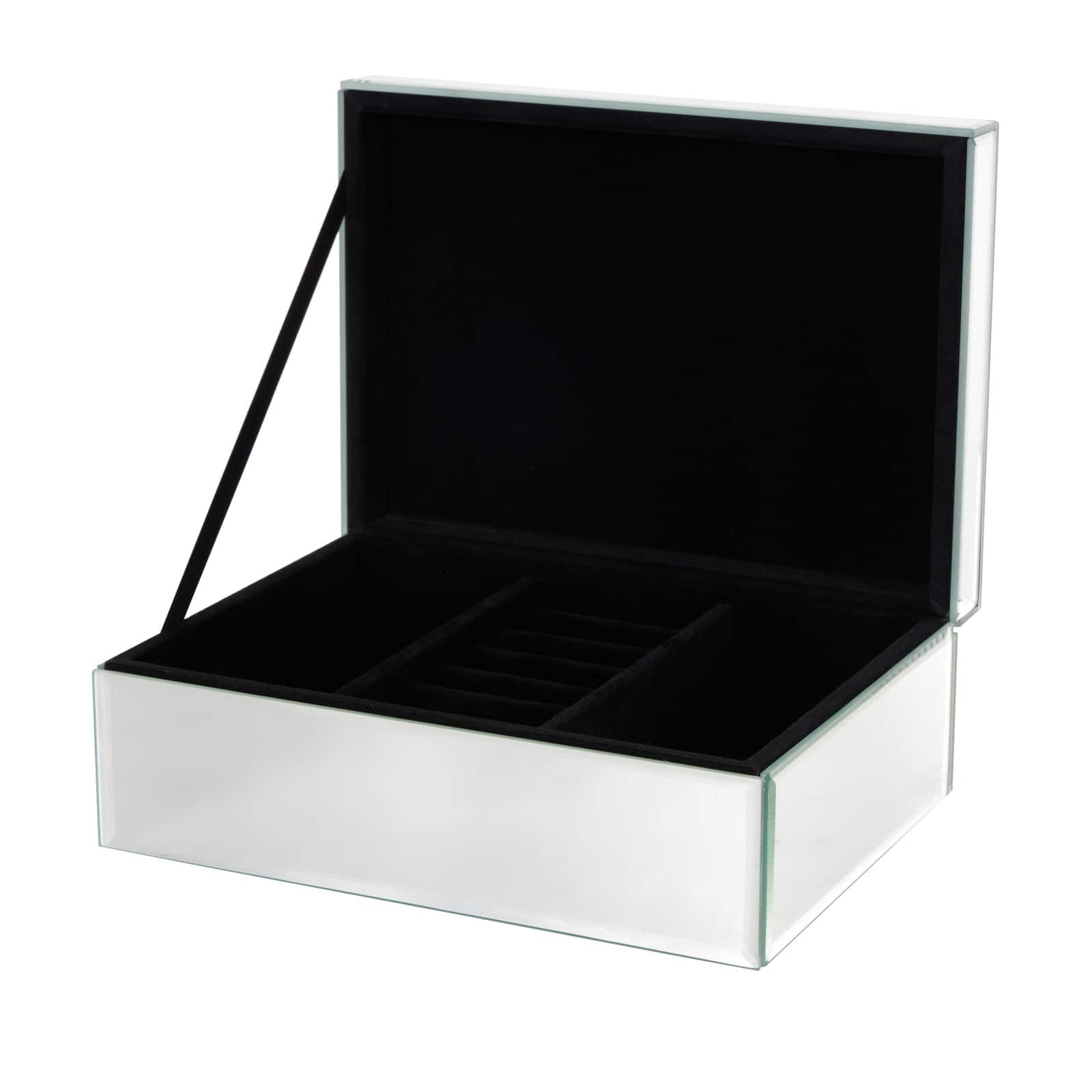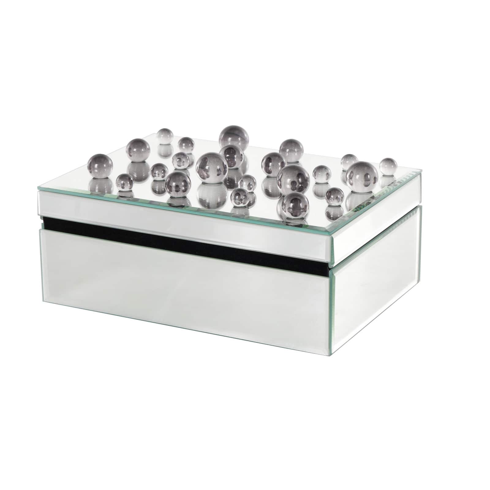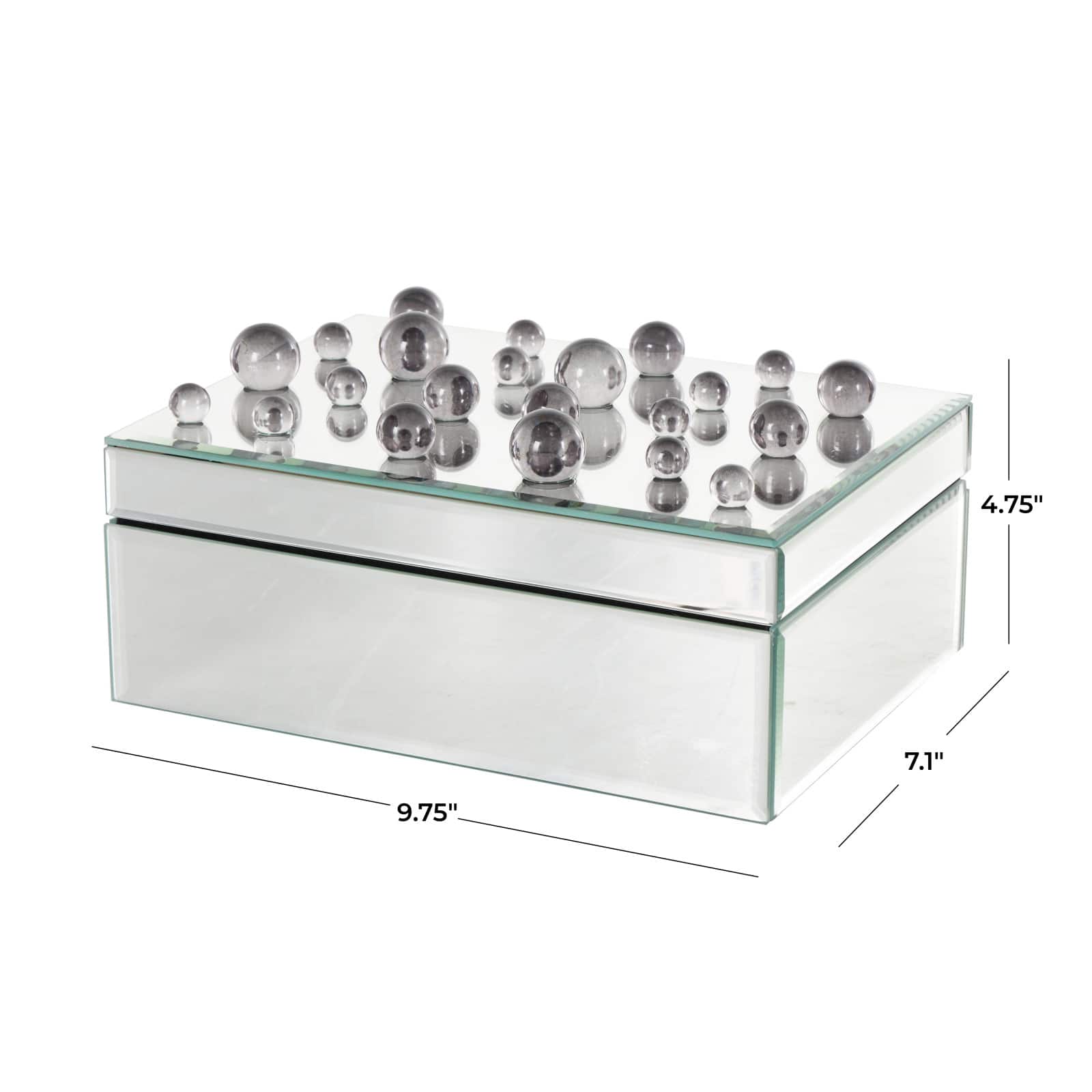 9.75" x 7" x 4.75" Silver Glass Mirrored Decorative Jewelry Box with Black Bubble Textured Balls
