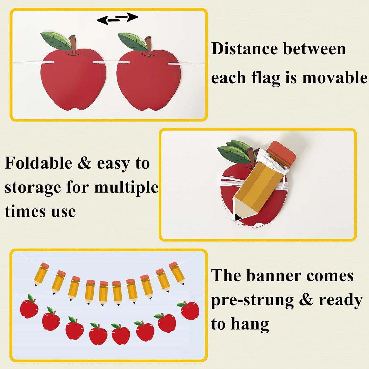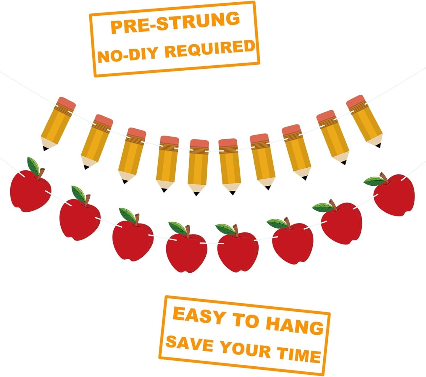 9.8 Feet - 2 PCS Back to School Decorations Banner Apple Pencil Shape (Multi Color)
