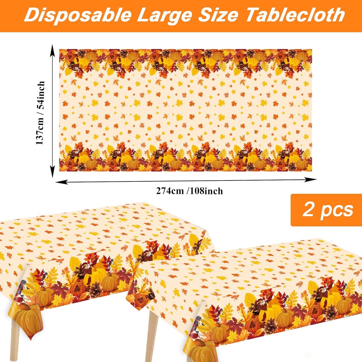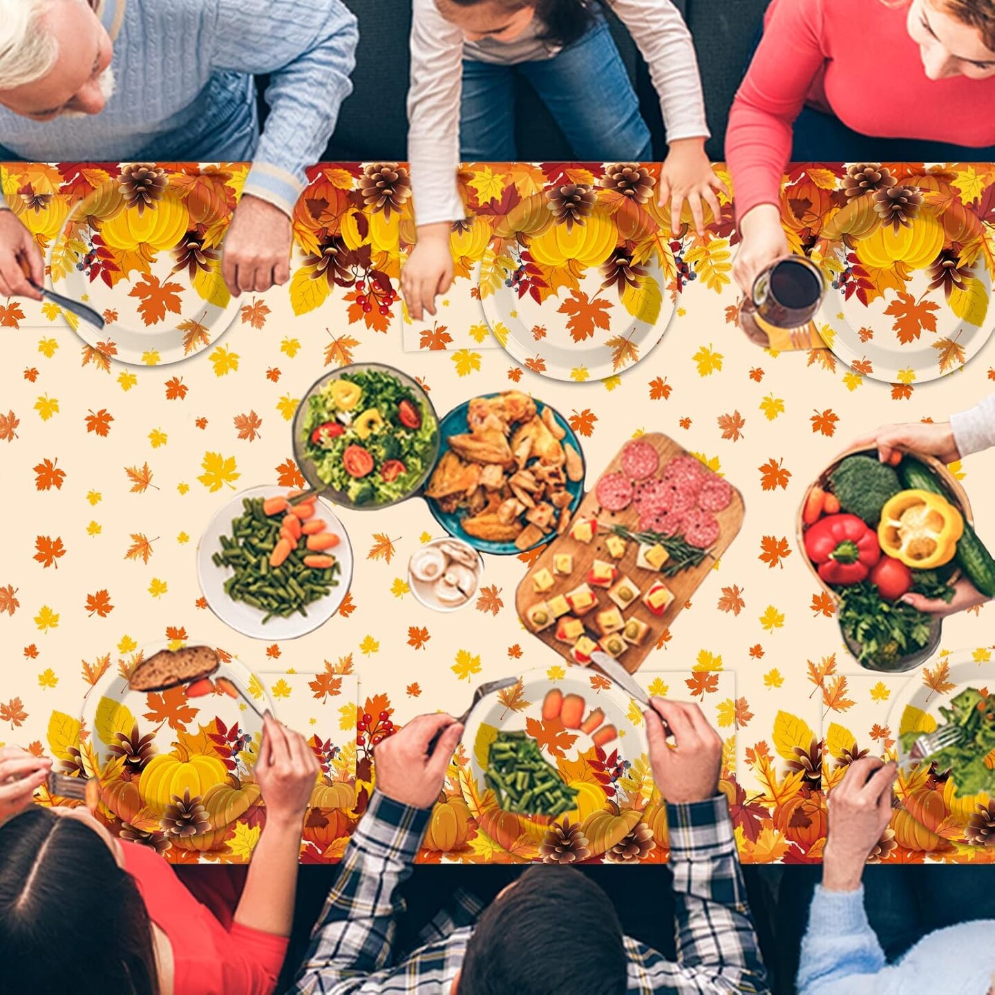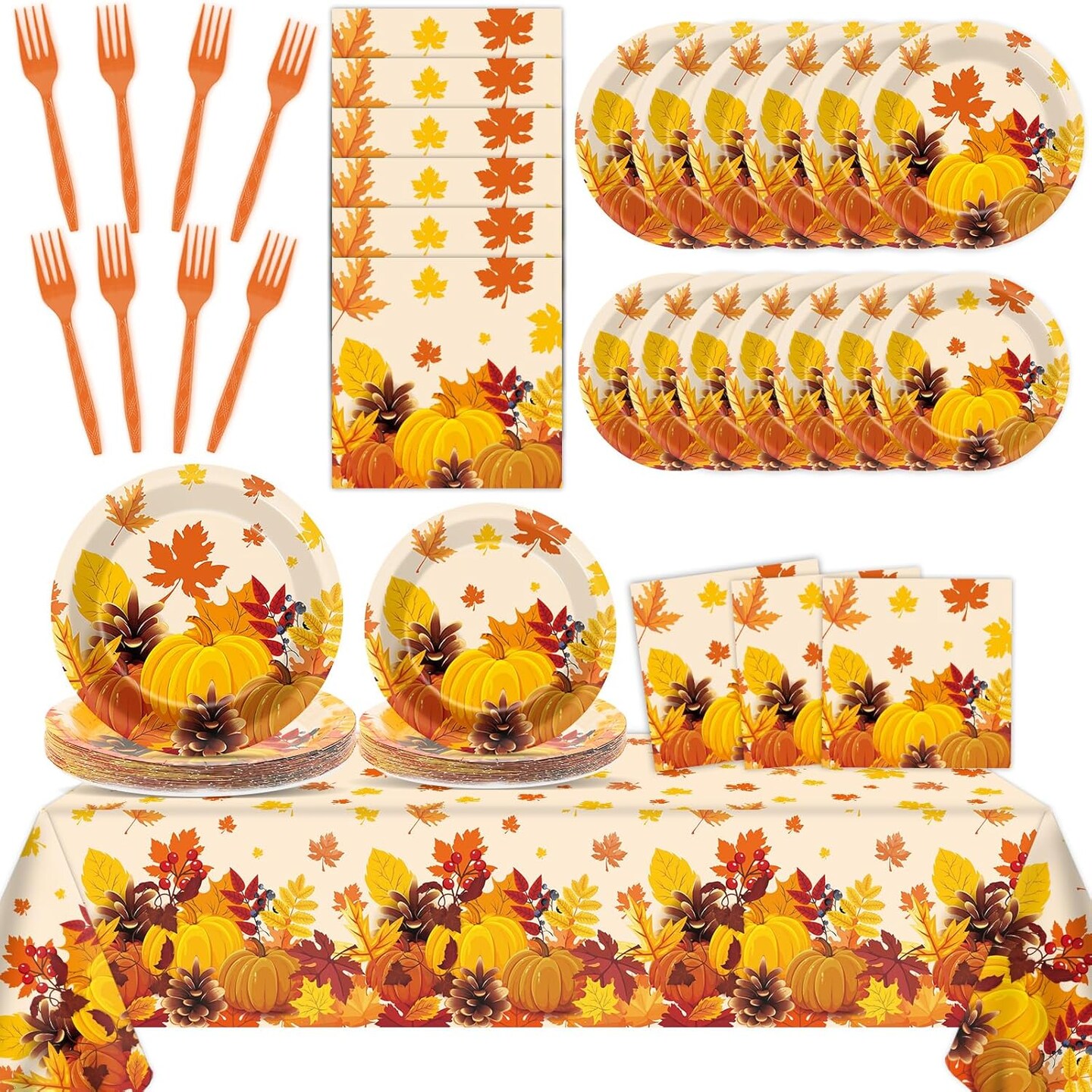 98 Pcs Autumn Thanksgiving Party Supplies Set - Plates Napkins Forks Tablecloth (Serves 24)
