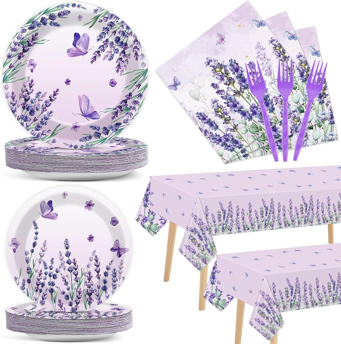 98 Pcs Purple Baby Shower Party Supplies (Purple)