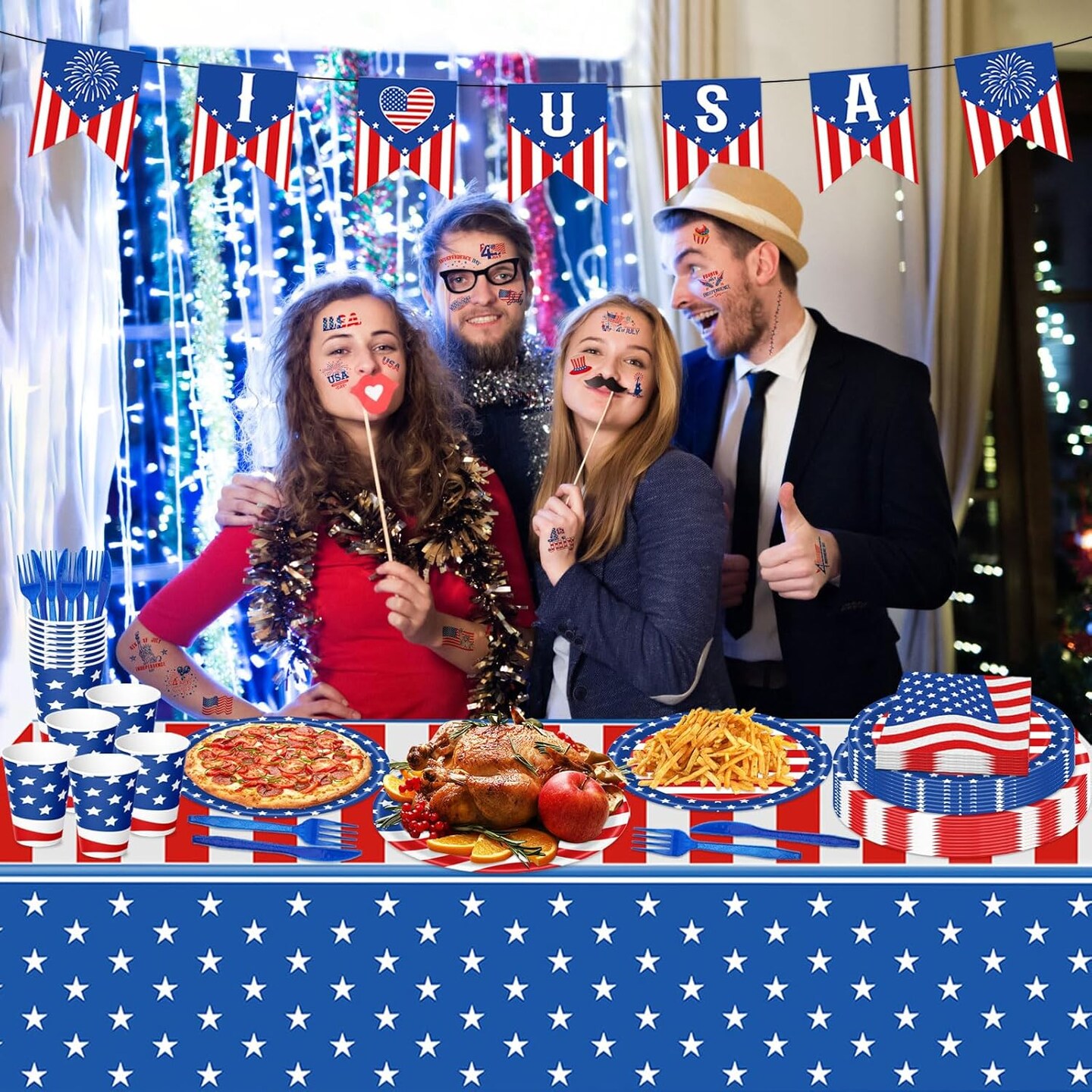 98PCS 4th of July Party Supplies – Plates, Napkins & Tablecloth for 16 Guests