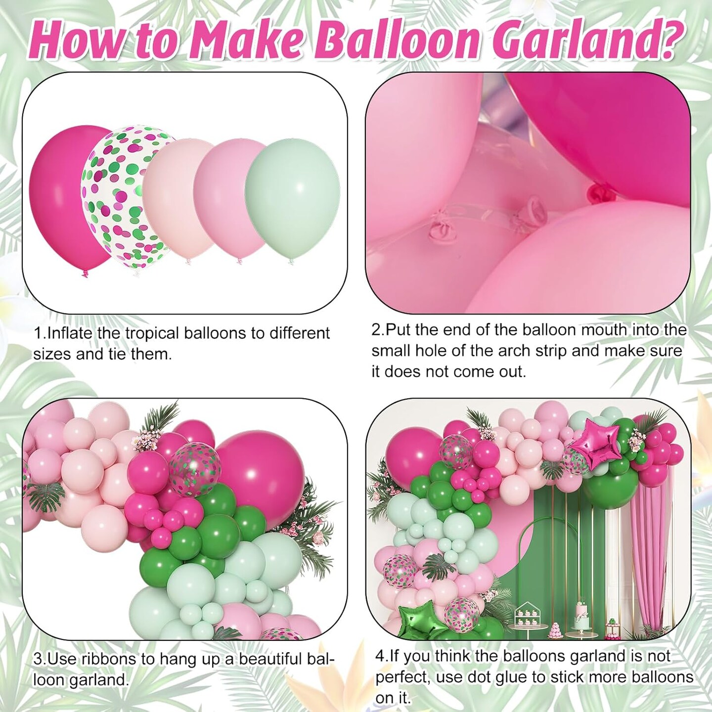 98Pcs Tropical Flamingo Balloons Garland Arch Kit ( Hot Pink Green) 18''/12''/10''/5''