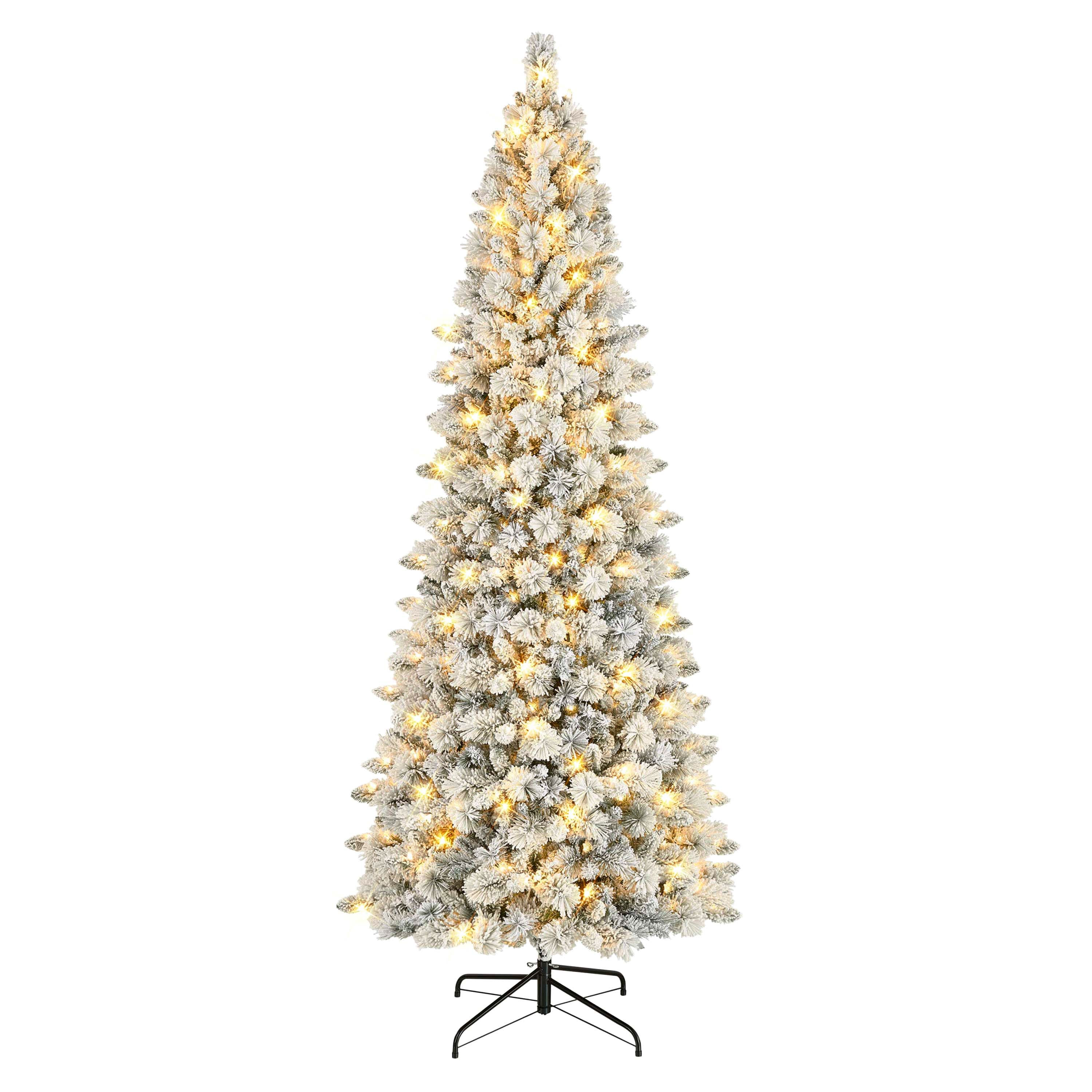 9ft. Pre-Lit Flocked Alberta Spruce Artificial Christmas Tree, White LED Lights