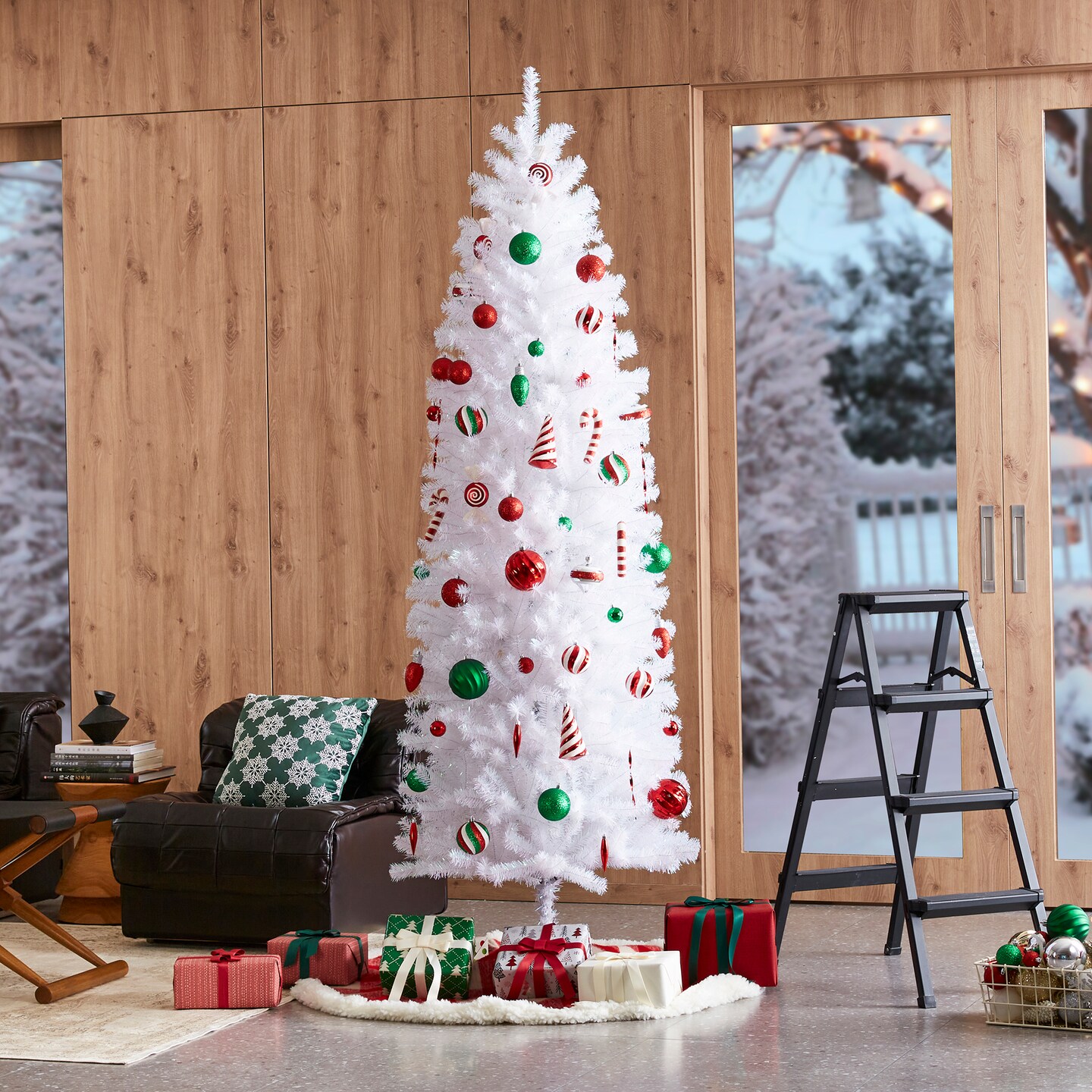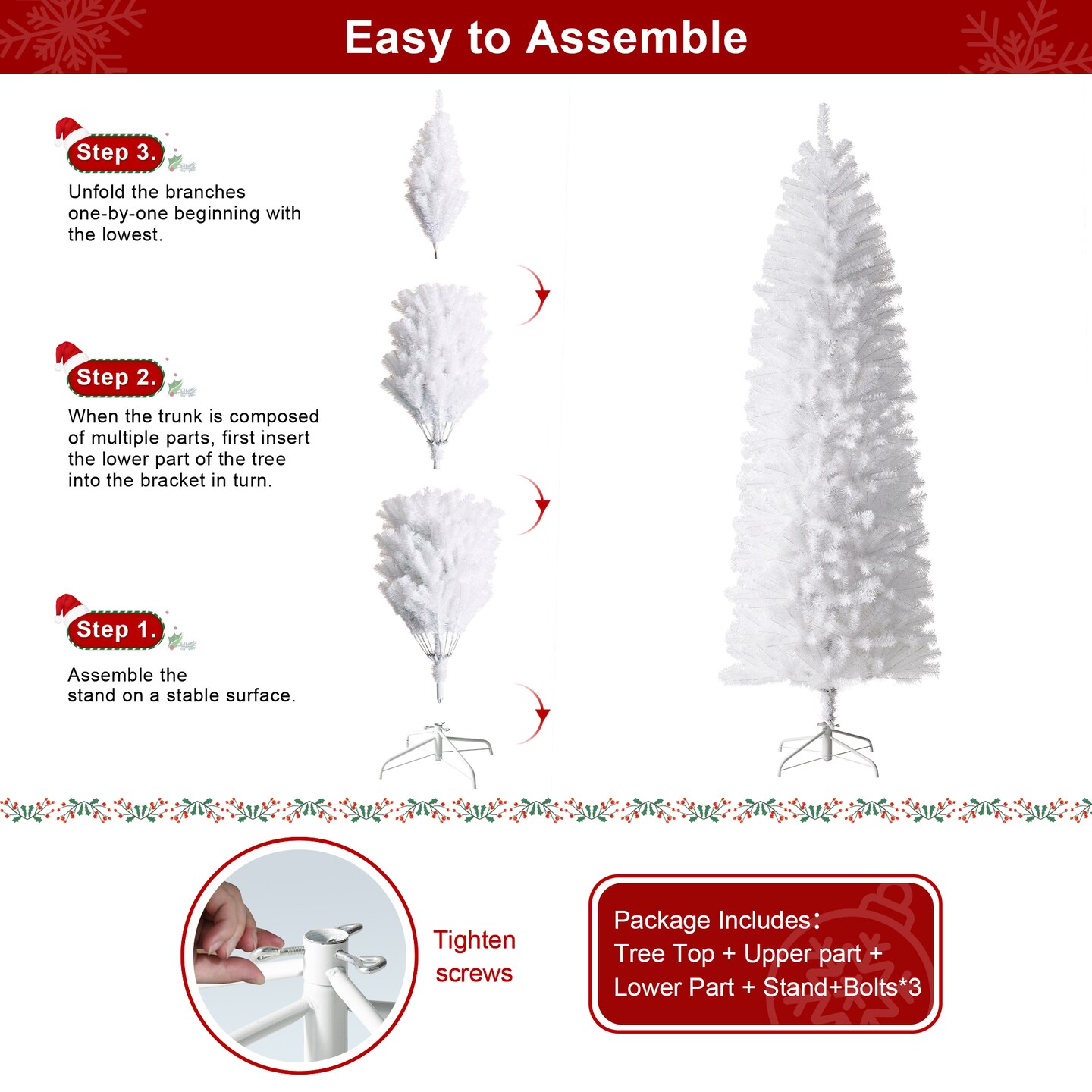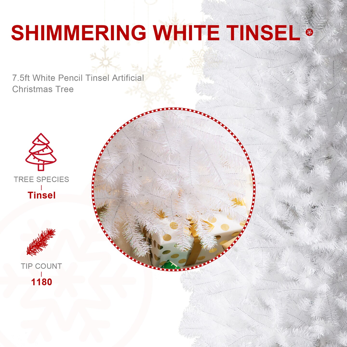 9FT/7.5FT White/Silver/Pink Pencil Tinsel Artificial Christmas Tree