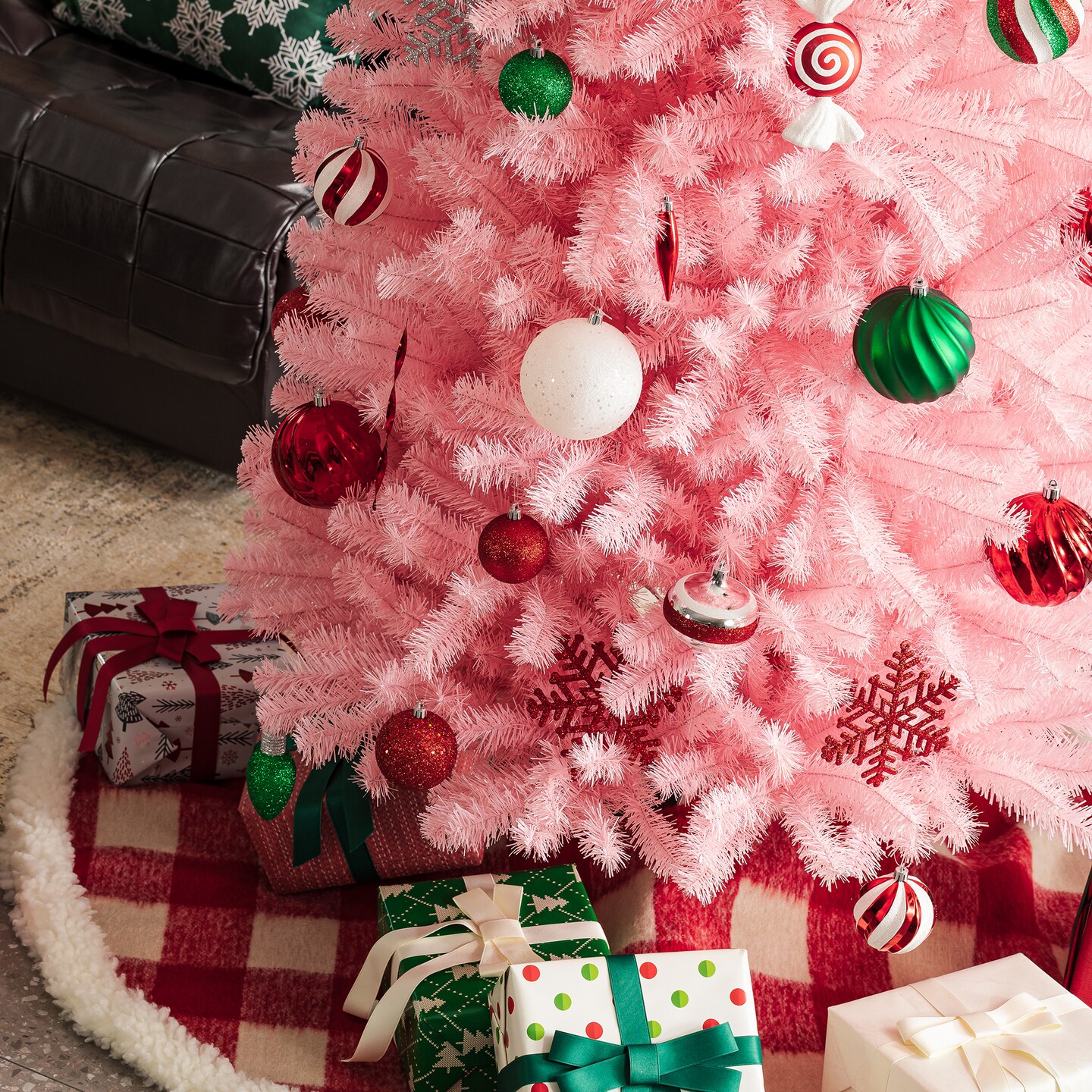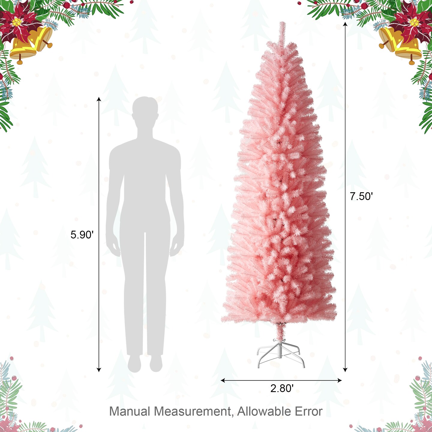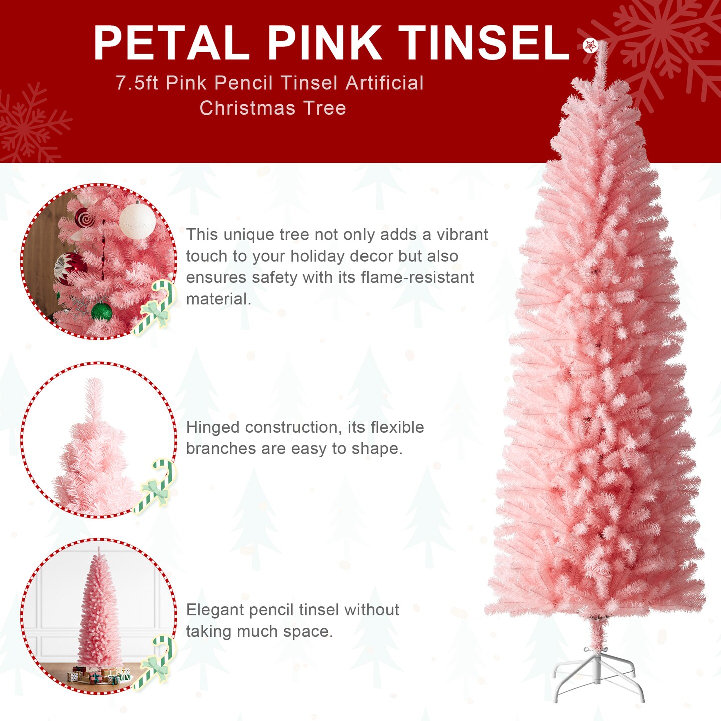 9FT/7.5FT White/Silver/Pink Pencil Tinsel Artificial Christmas Tree