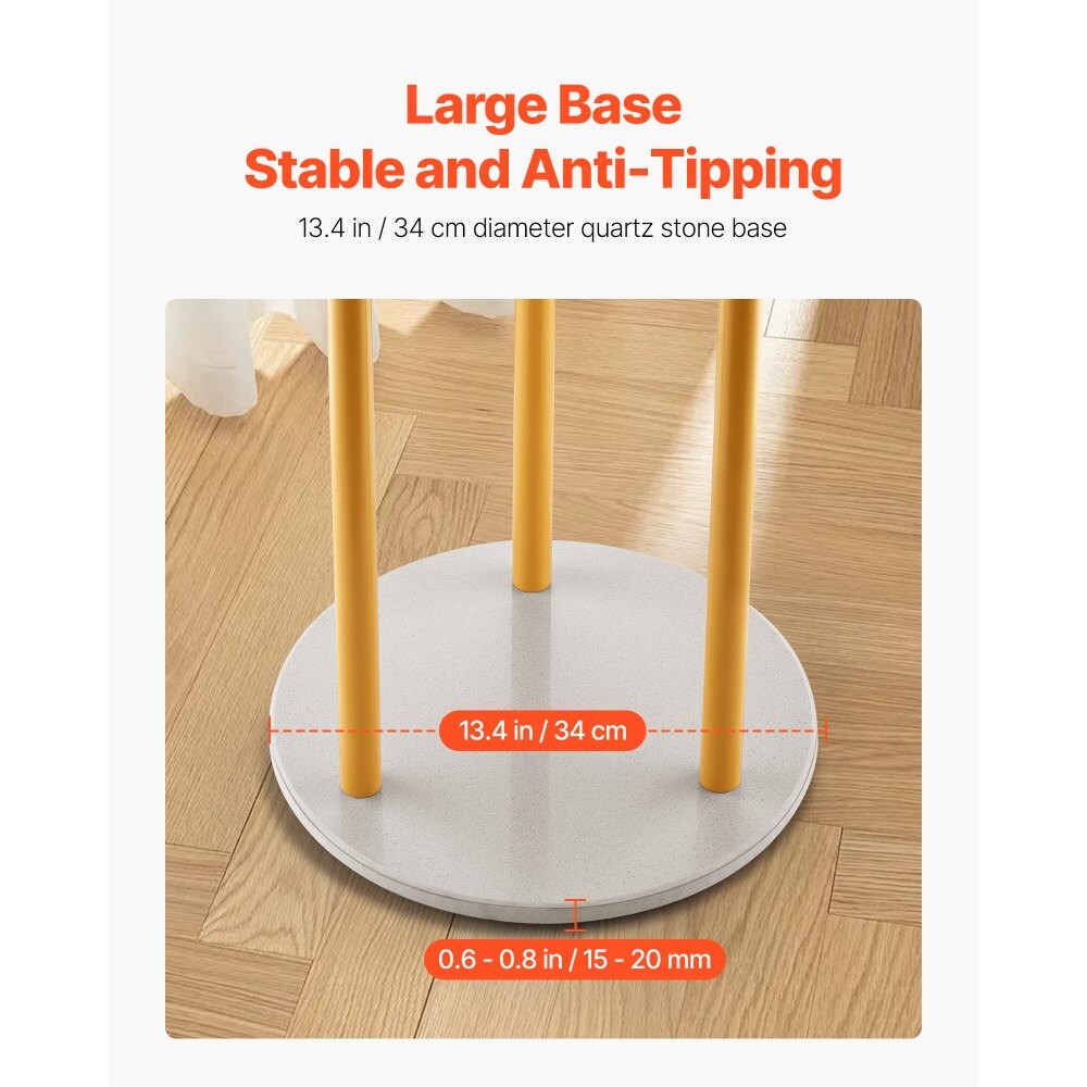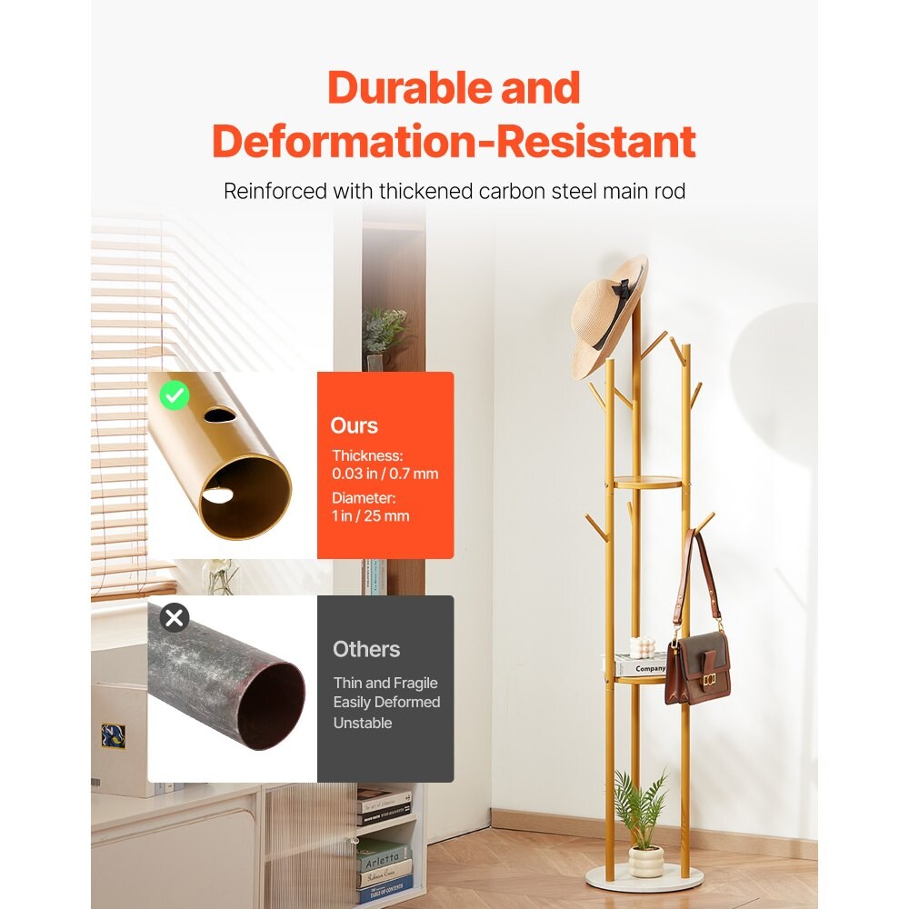 9-Hook Freestanding Coat Rack Stand with Gold Finish and Quartz Base for Living room or Bedroom
