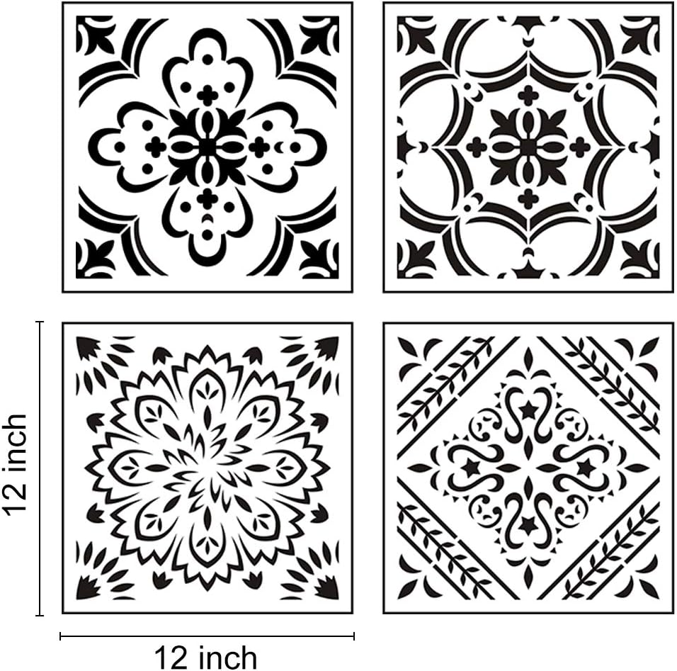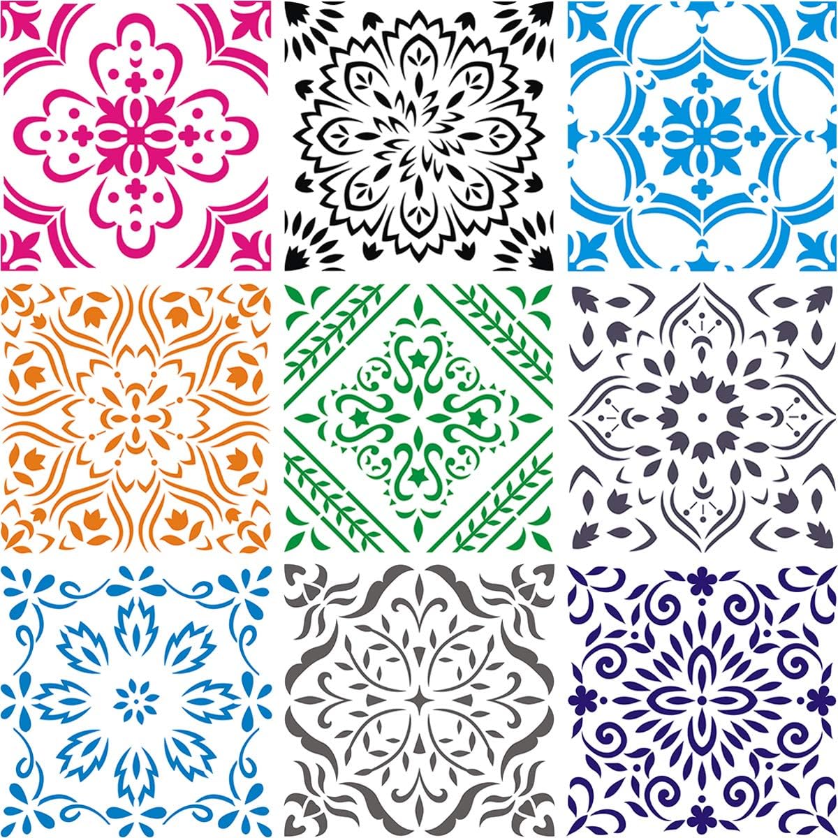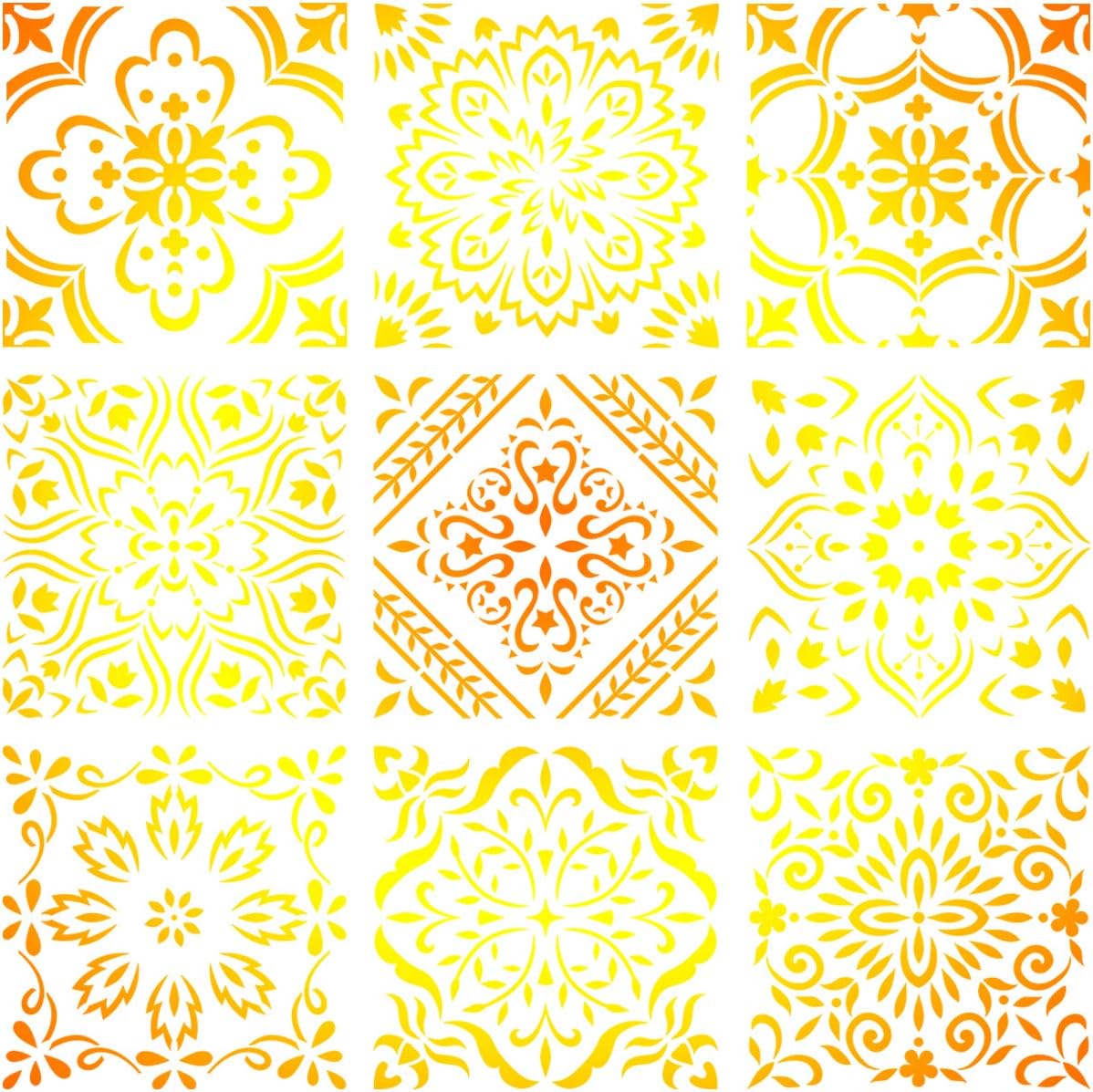 9-Pack Large Mandala Stencils (12x12 in) – Reusable Painting Templates for DIY Crafts on Floors, Walls, Fabric, Wood, Tiles, Furniture & Home Decor