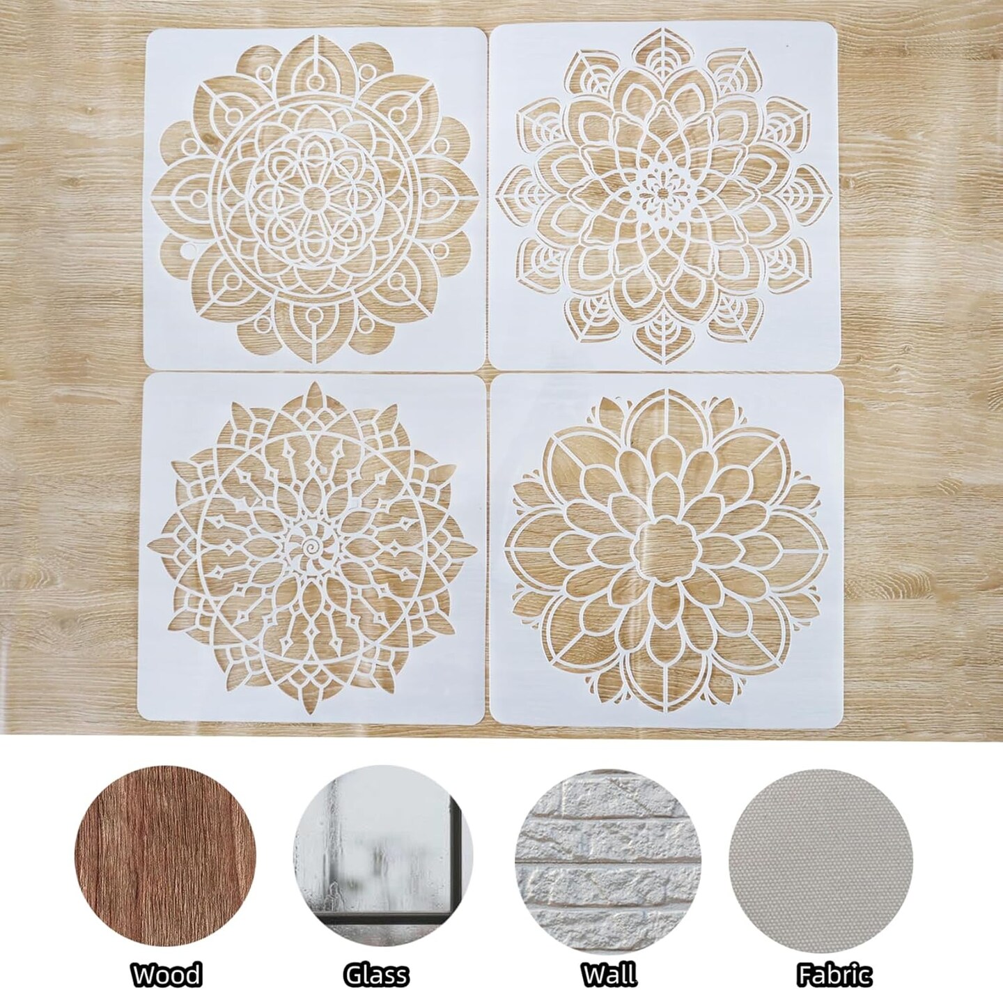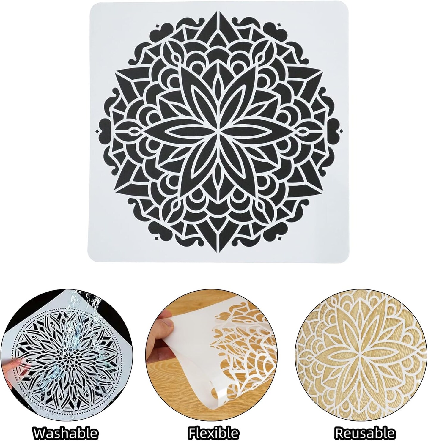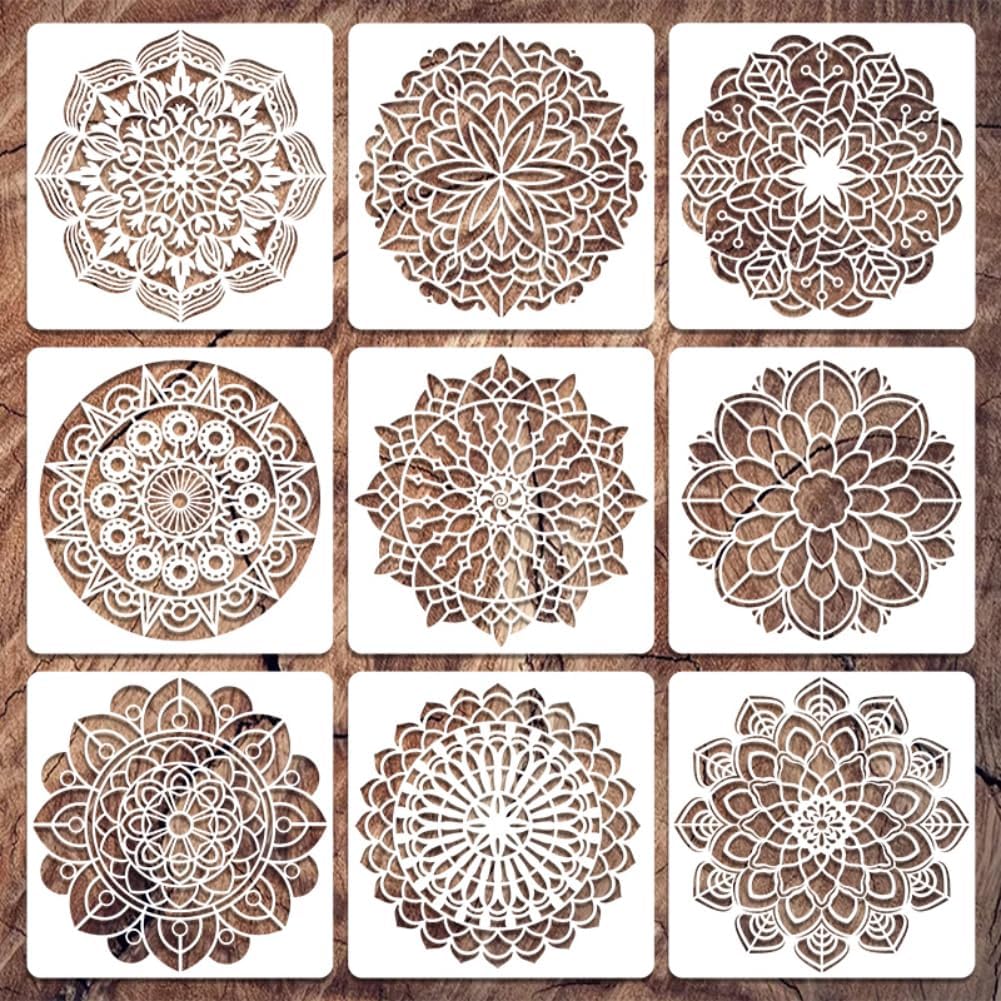 9-Pack Large Mandala Stencils (12x12 in) – Reusable Plastic Painting Templates for DIY Crafts on Walls, Wood, Floors, Canvas & Home Decor