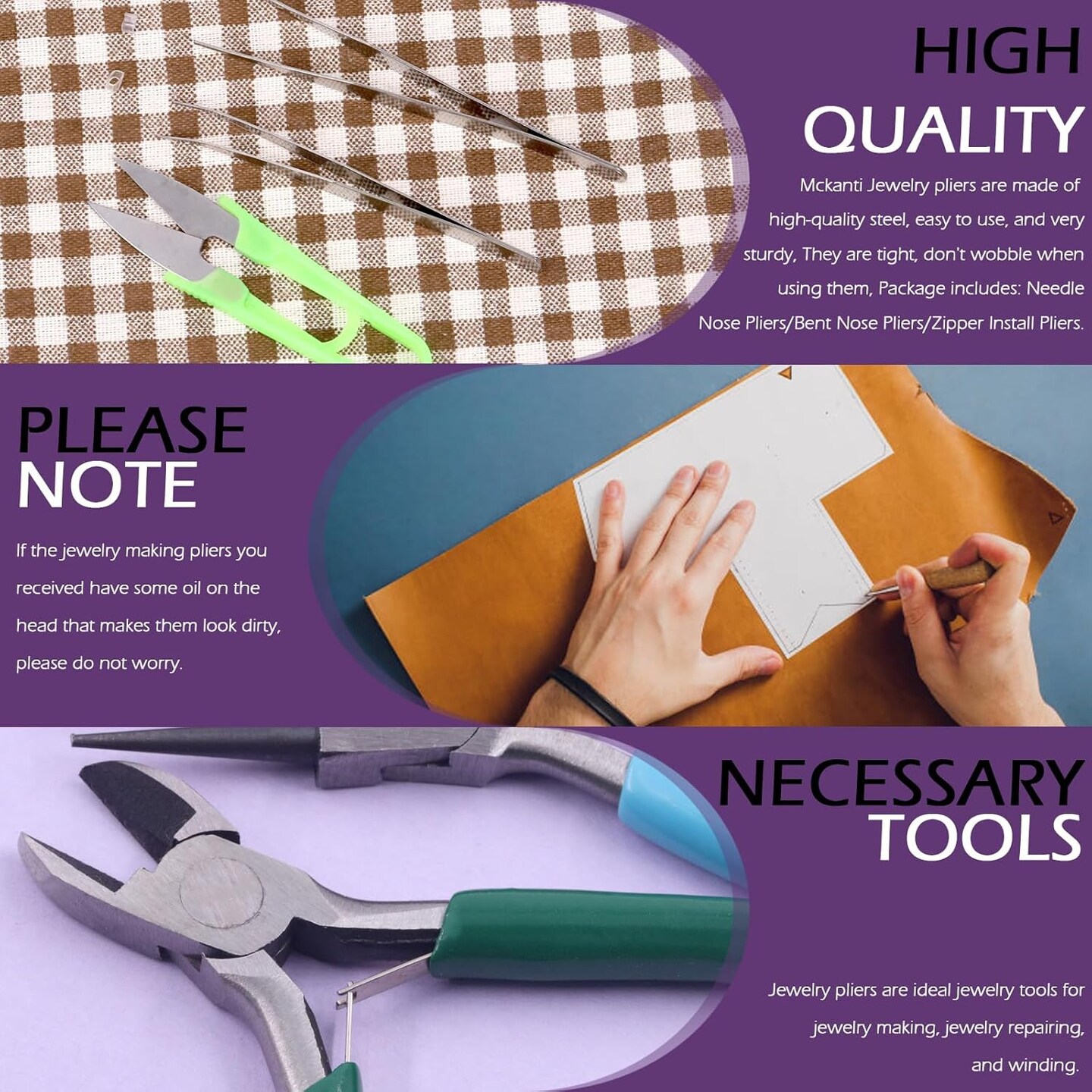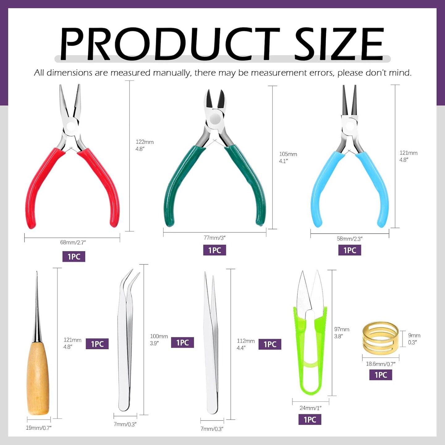 9Pcs 4.5Inch Jewelry Making Assortments Kit, 3 Types Jewelry Pliers Needle Nose Pliers Round Nose Pliers Wire Cutters, with Awl, Tweezers, Thimble Ring, Scissors, Jewelry Making Supplies