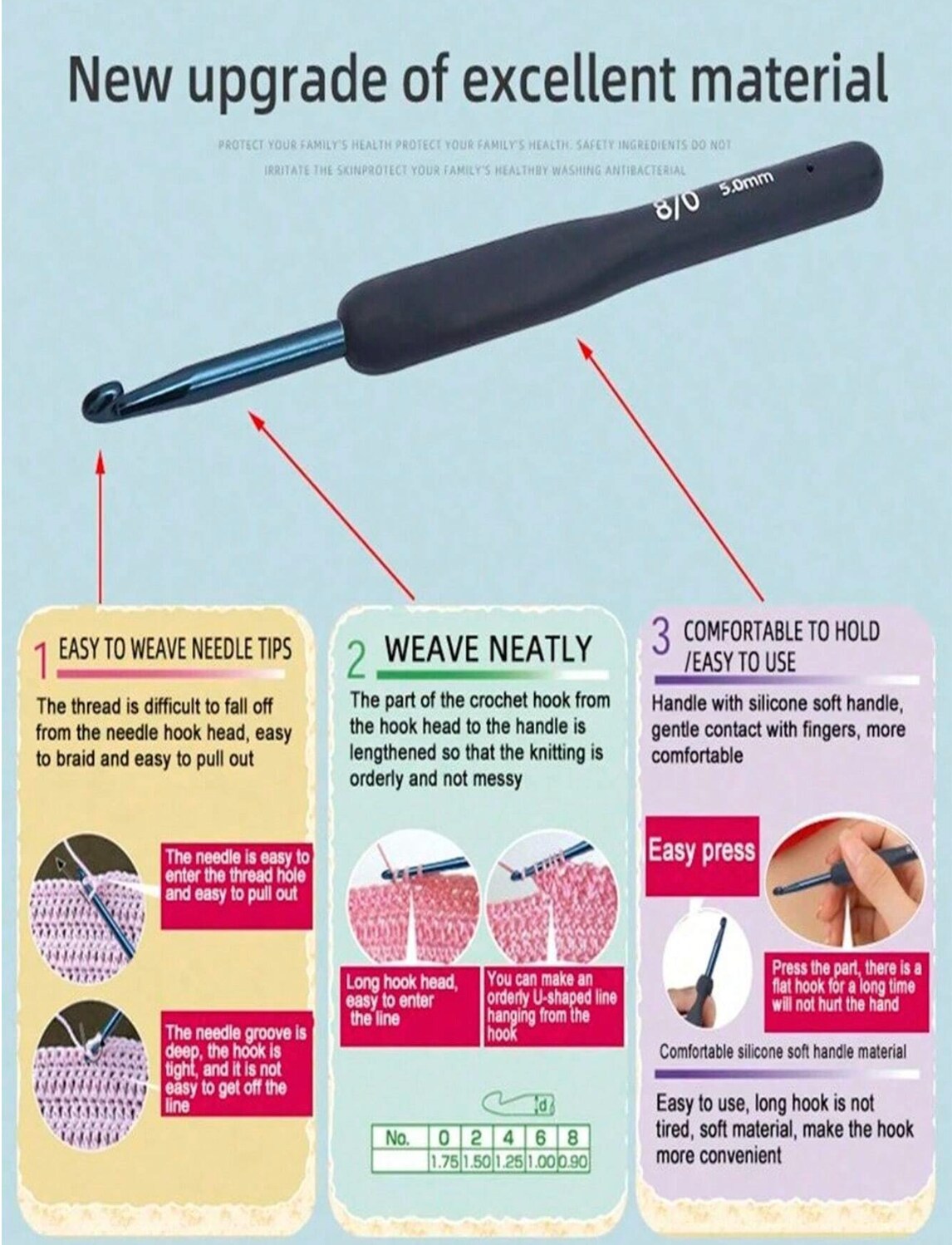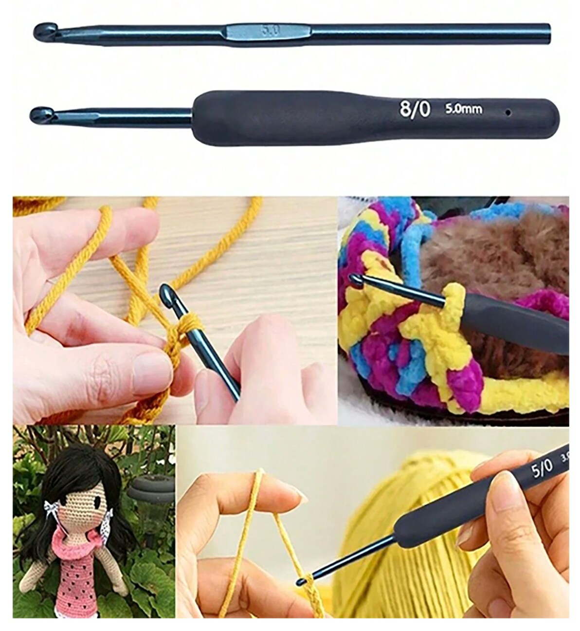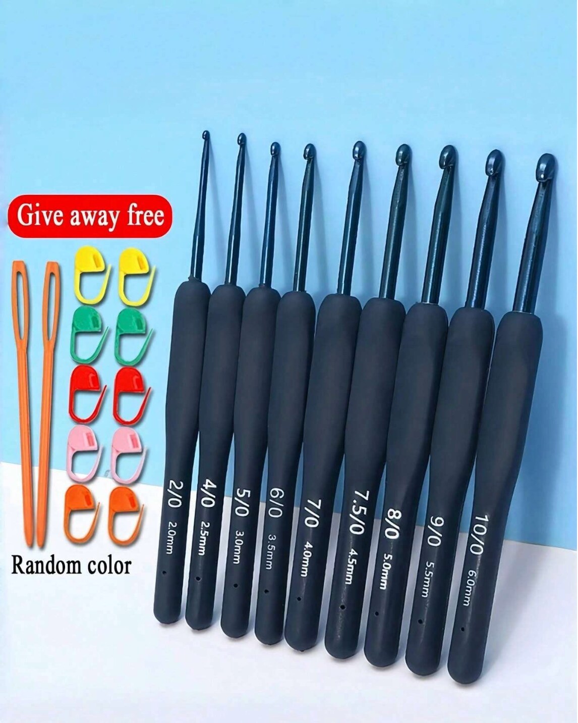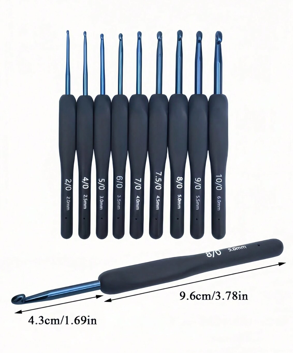 9Pcs Blue Stainless Steel Crochet Hook Set – Soft Grip Ergonomic Handles for Amigurumi, Yarn Craft & DIY – Beginner Knitting Needles Kit – Christmas Holiday Gift