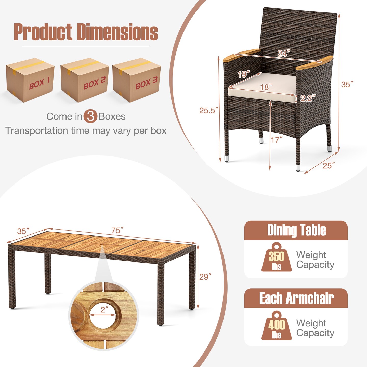 9-Piece Outdoor Dining Set with Solid Acacia Wood Table, Mix Brown PE Rattan Chairs