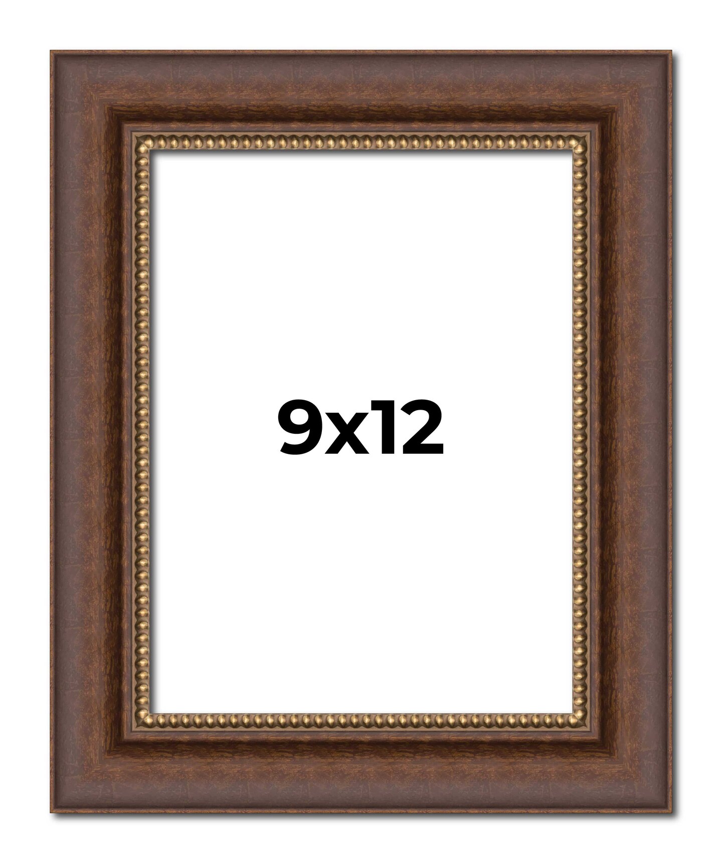 9x12 Traditional Picture Frame with UV-Resistant Acrylic & Acid Free Backing, Available in 3 Finishes - Black, Brown, Gold