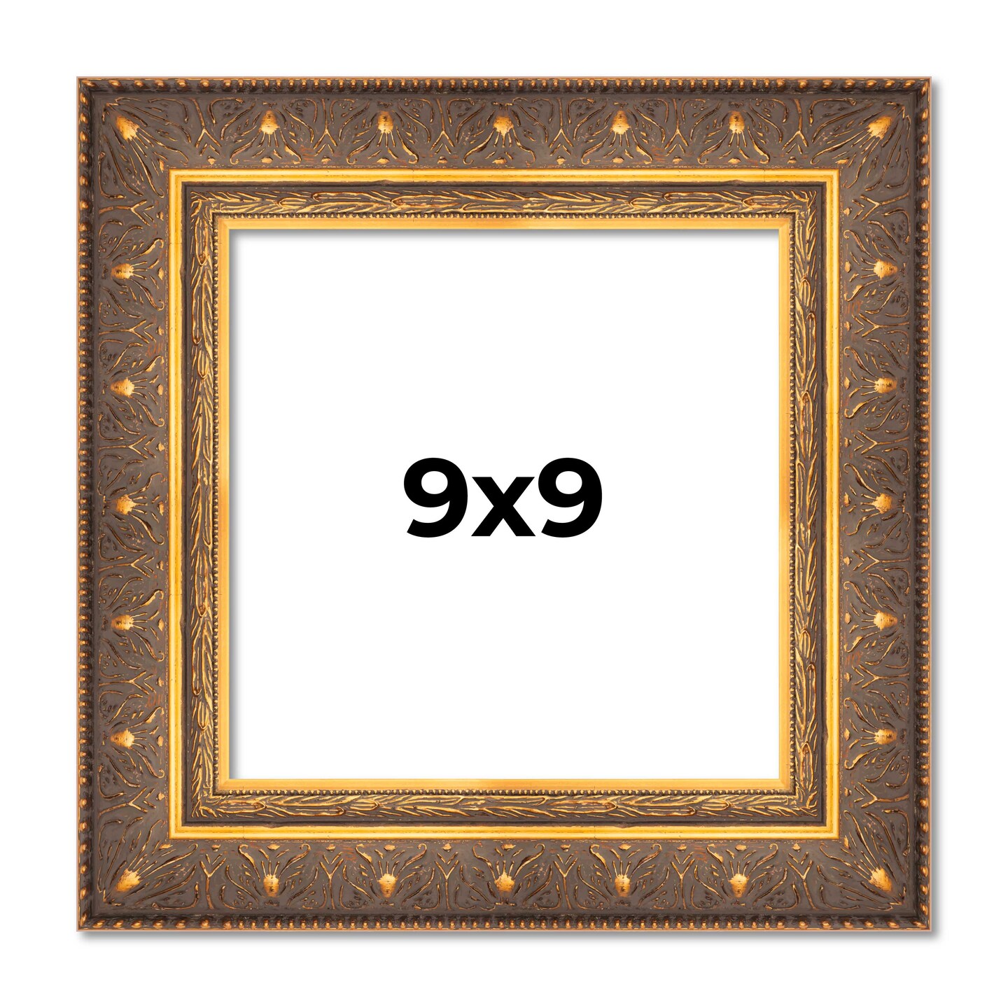 9x9 Museum Gold Picture Frame - UV Acrylic, Foam Board Backing, Hanging Hardware