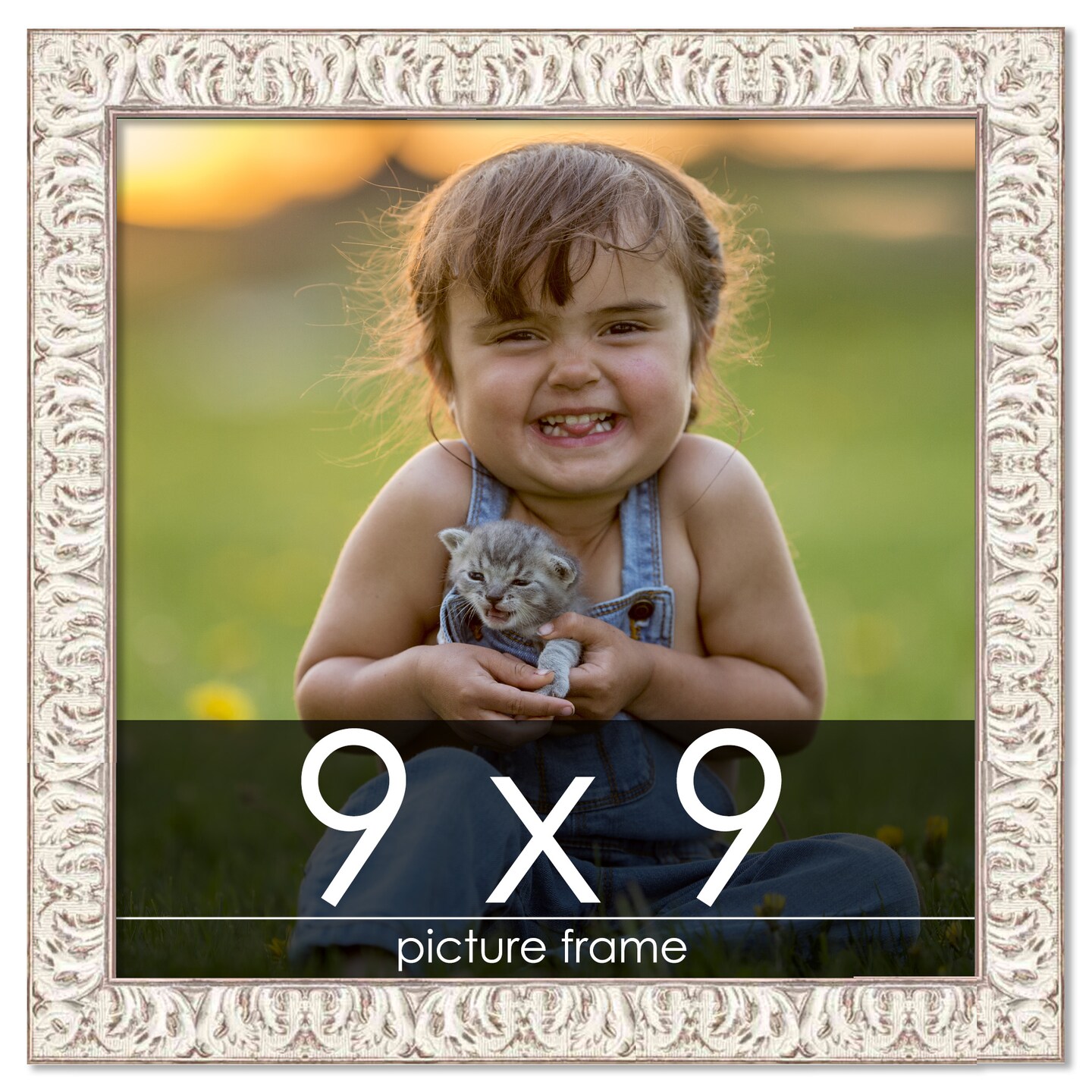 9x9 Refined White Picture Frame - UV Acrylic, Foam Board Backing, Hanging Hardware