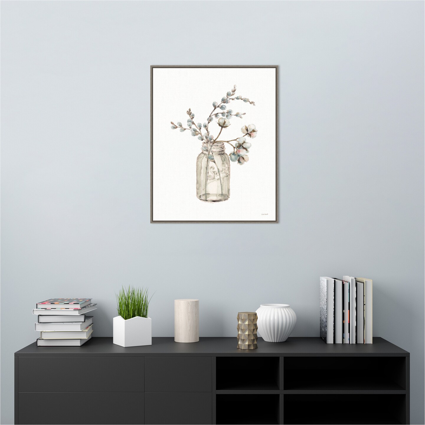 A Country Weekend Fall Jar by Lisa Audit 23-in. W x 28-in. H. Canvas Wall Art Print Framed in Grey