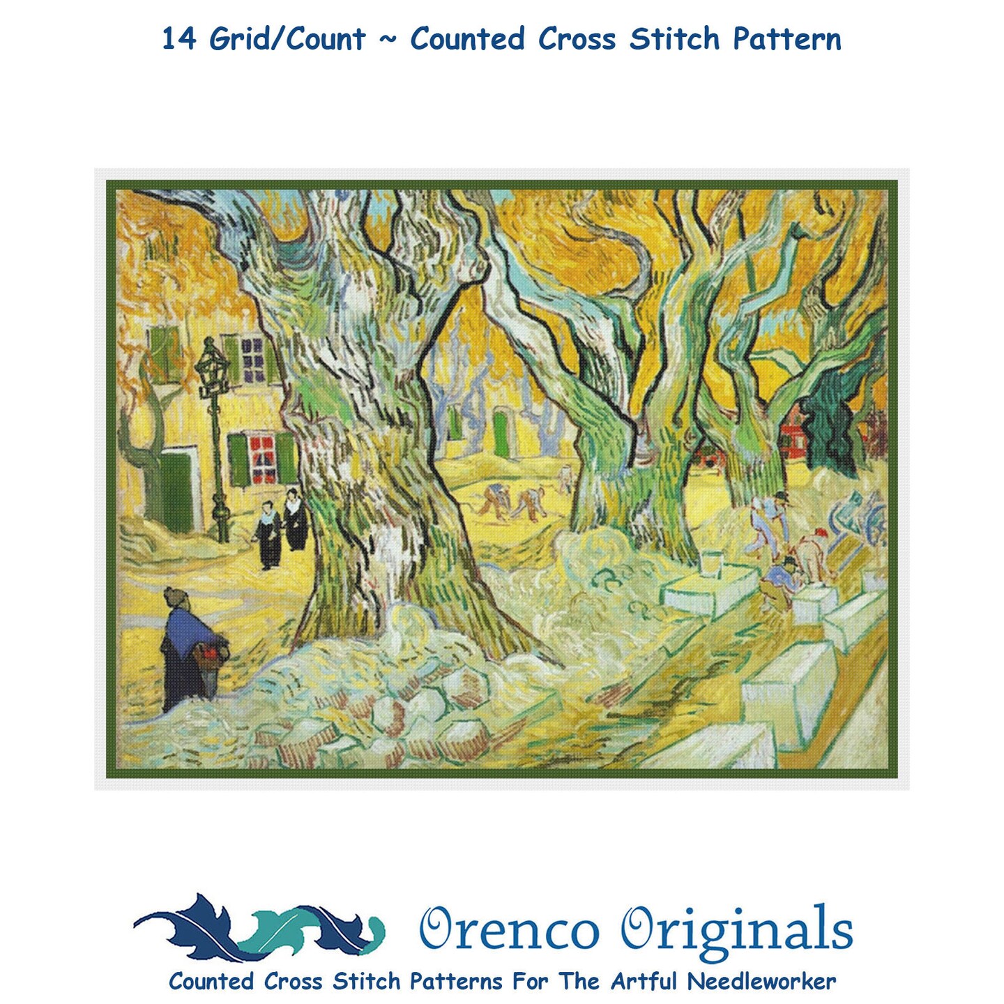 A French Village Street by Impressionist Van Gogh Counted Cross Stitch Pattern