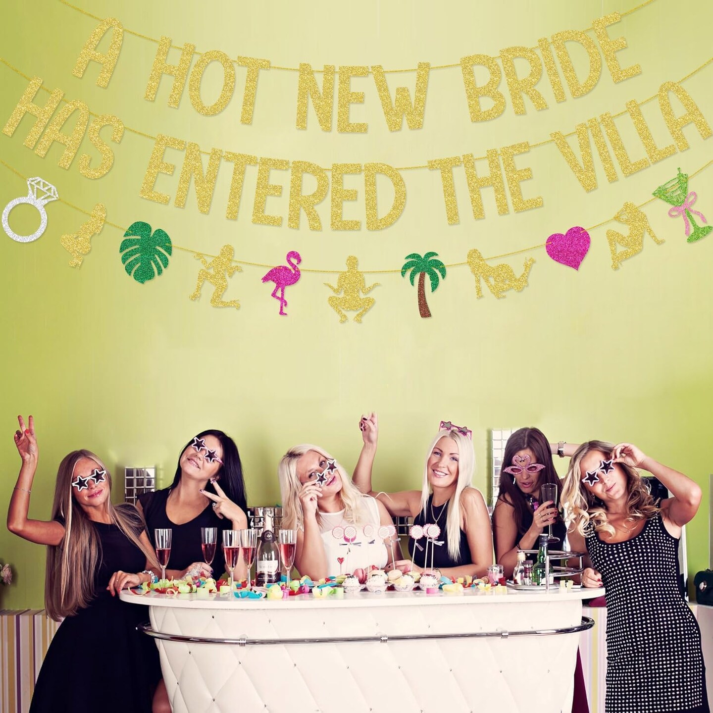 A Hot New Bride Has Entered The Villa Banner Garland for Love Island Themed Bachelorette Party Decorations