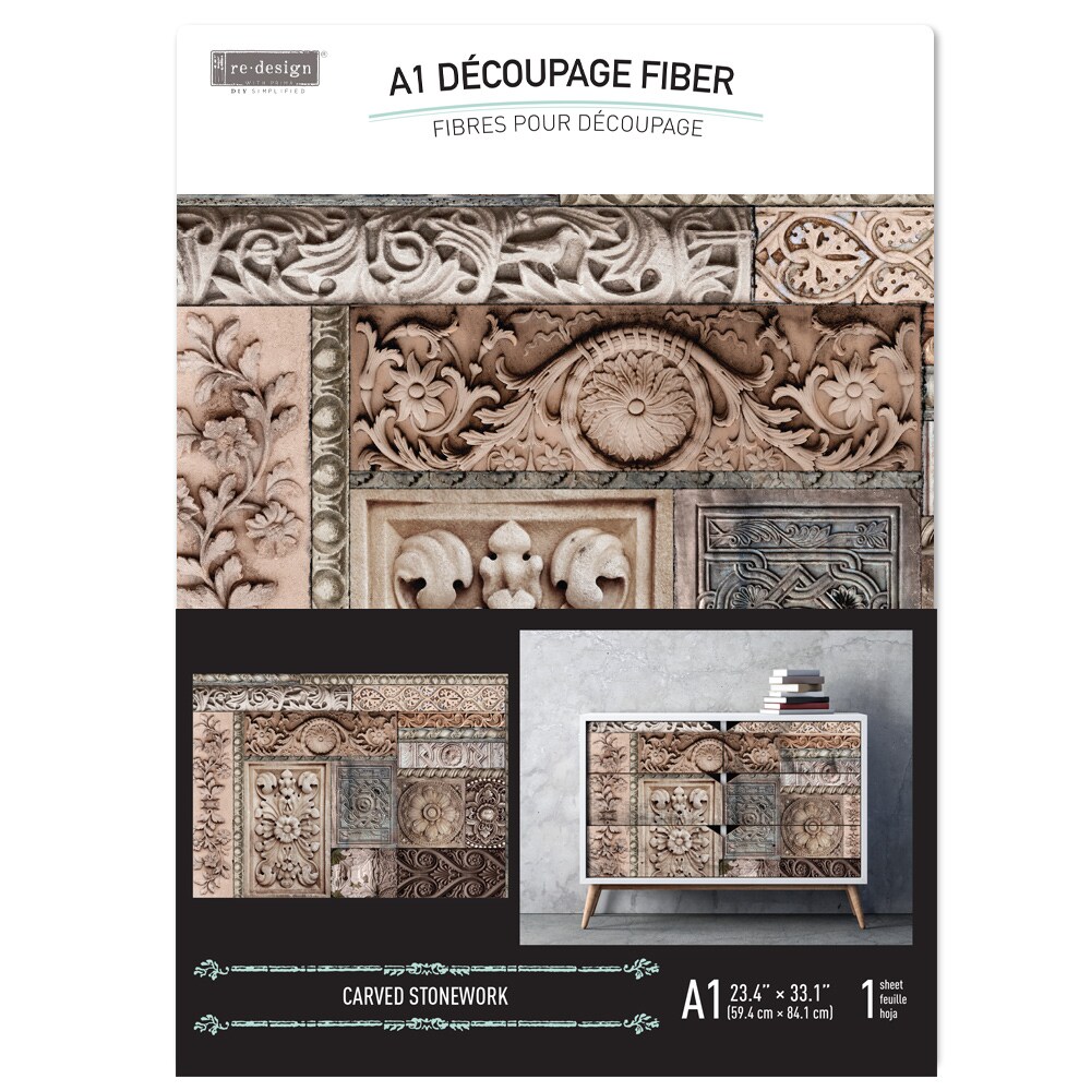 A1 Decoupage Fiber - Carved Stonework - 1 sheet, A1 size