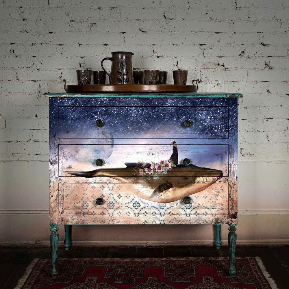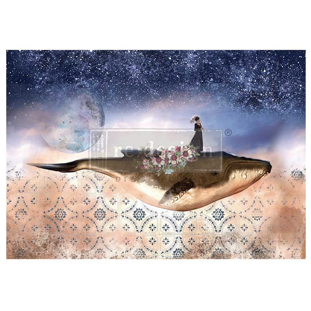 A1 Decoupage Fiber - Whale In Cosmos - 1 sheet, A1 size