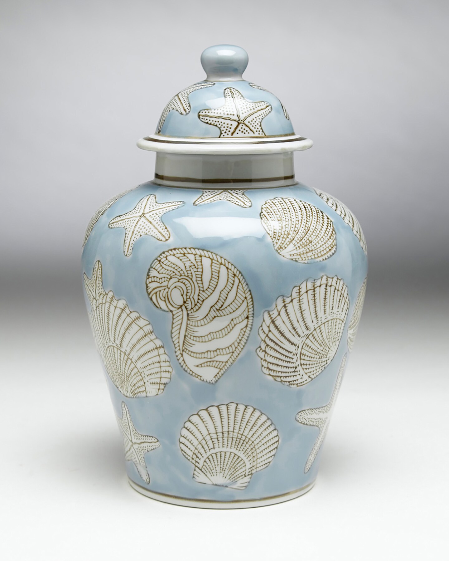 AA Importing 59728 Blue Seashell 10 Inch Ginger Jar