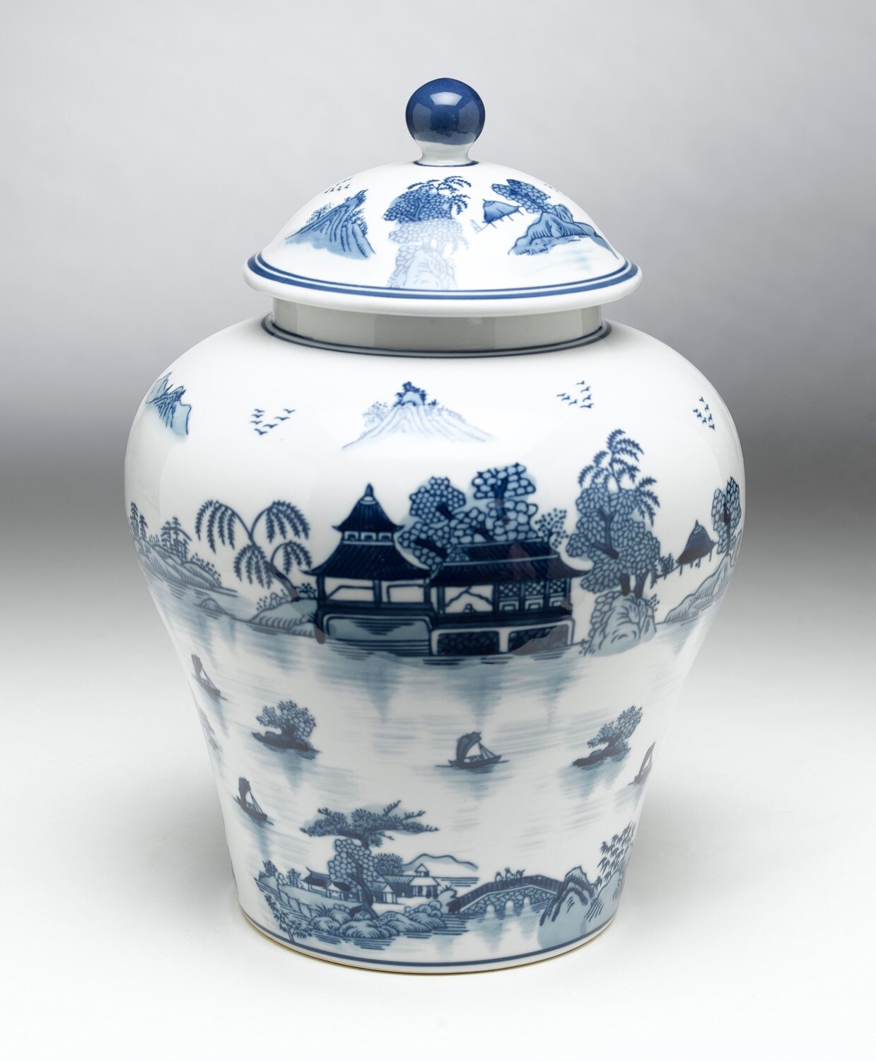 AA Importing 59739 Blue And White Ginger Jar With Lid