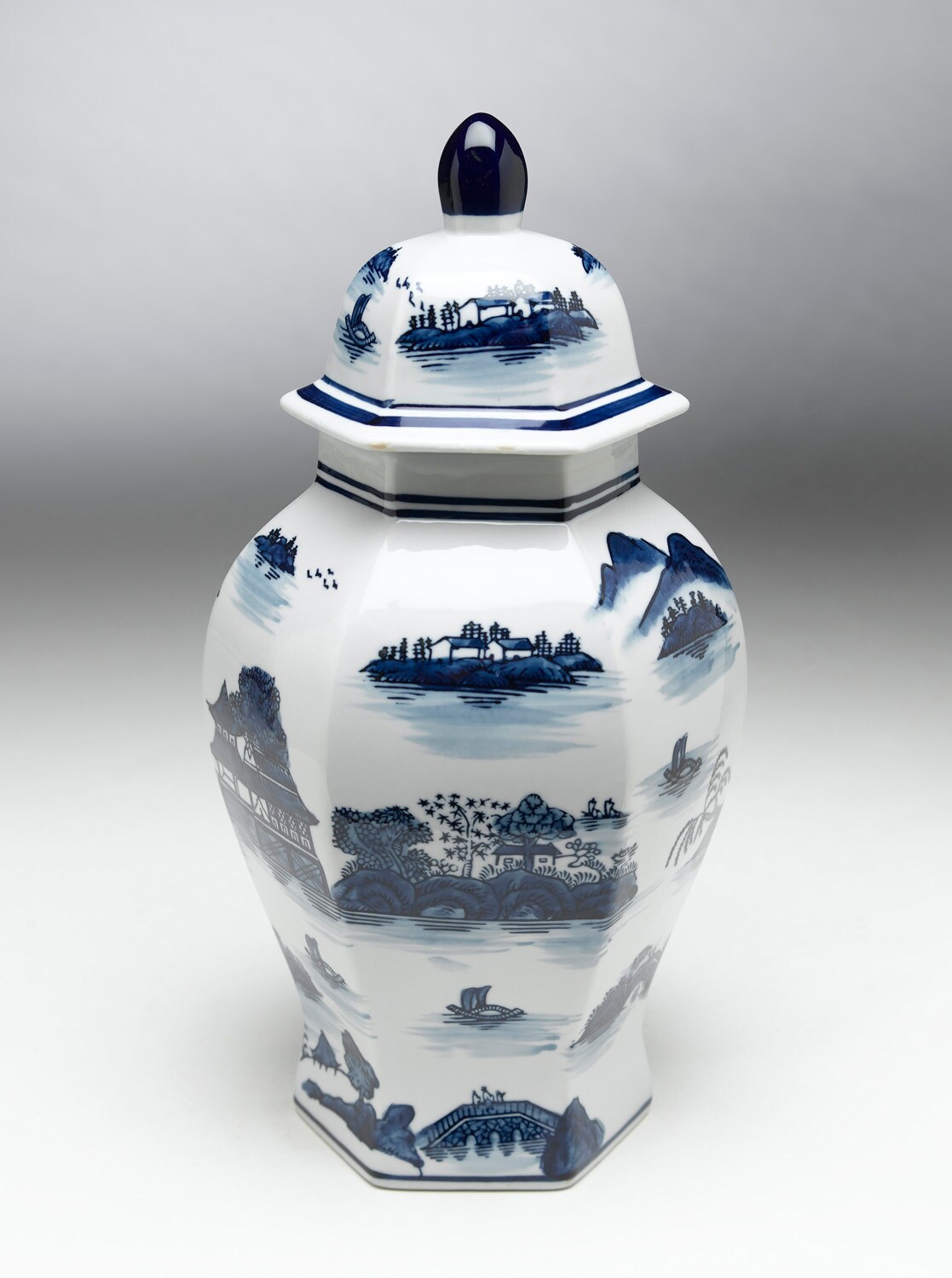 AA Importing 59742 Blue And White Shaped Ginger Jar With Lid
