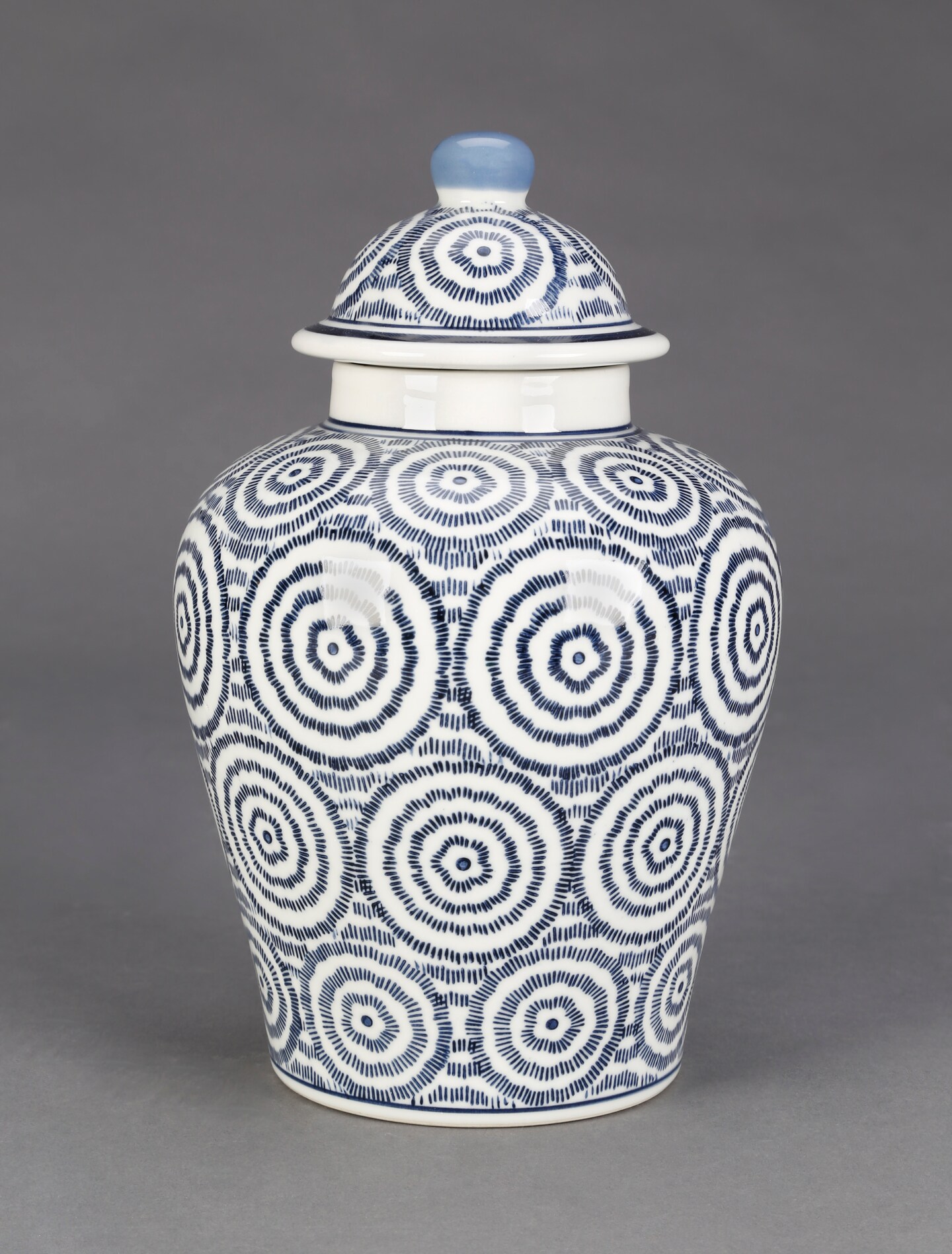 AA Importing Blue and White Circles 10" Ginger Jar with Lid