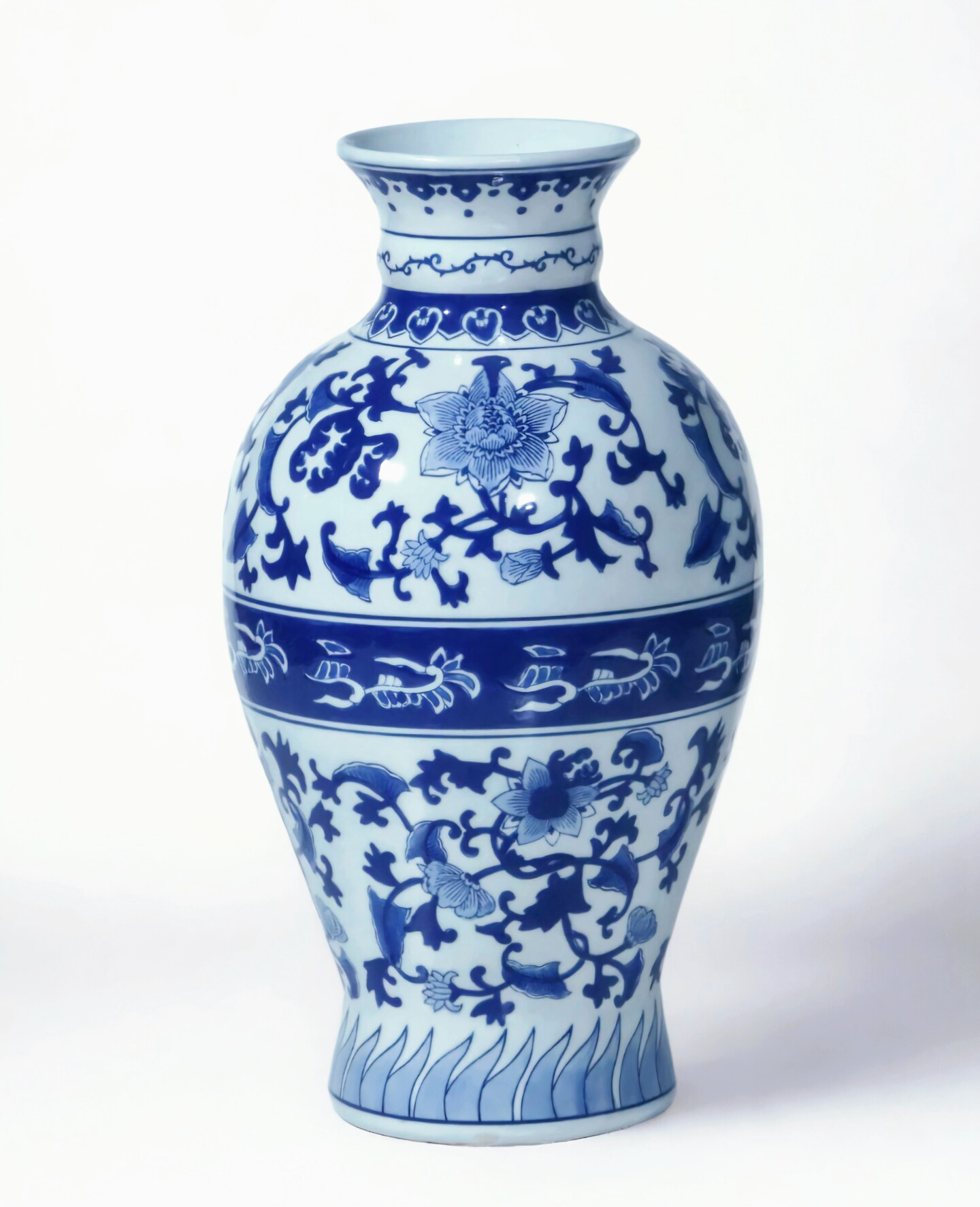 AAI 17" Porcelain Vase, Floral Design, Blue and White