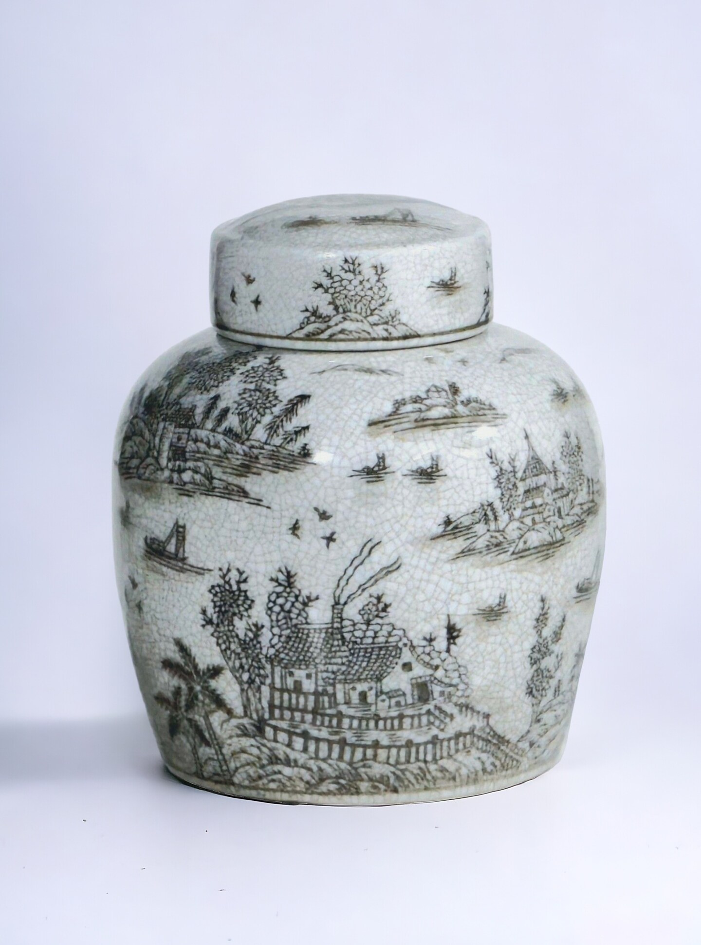 AAI 9" Ginger Jar, Chinoiserie Design, Brown