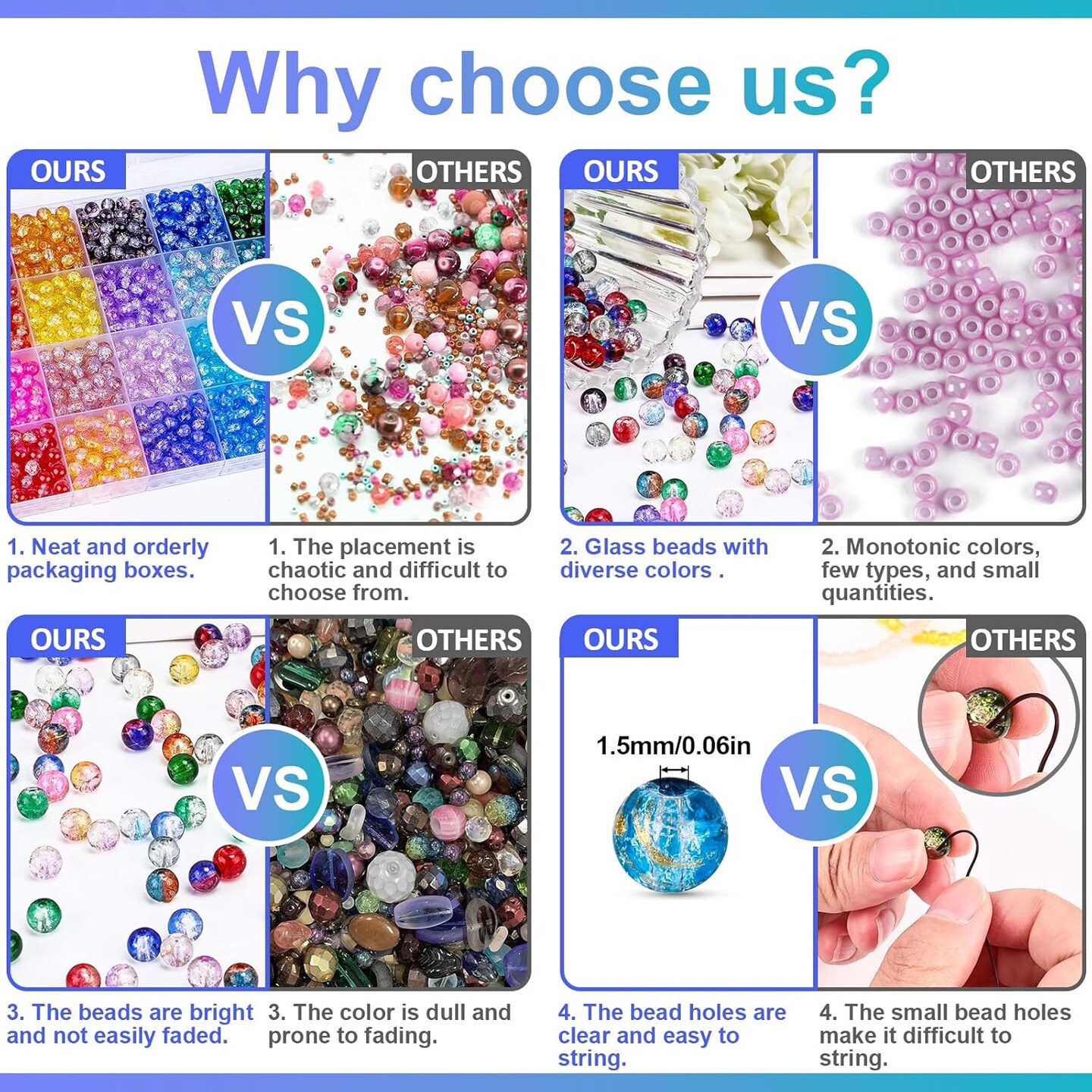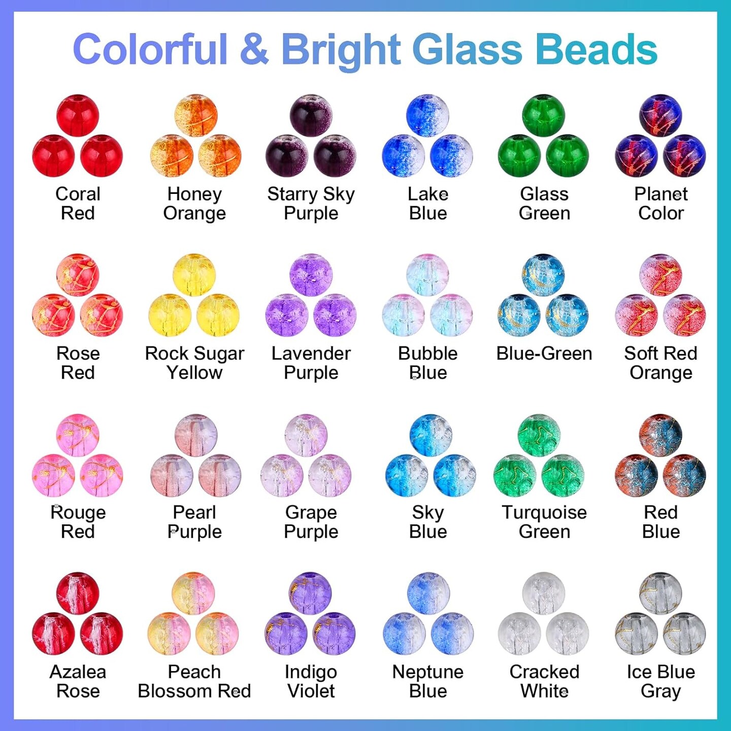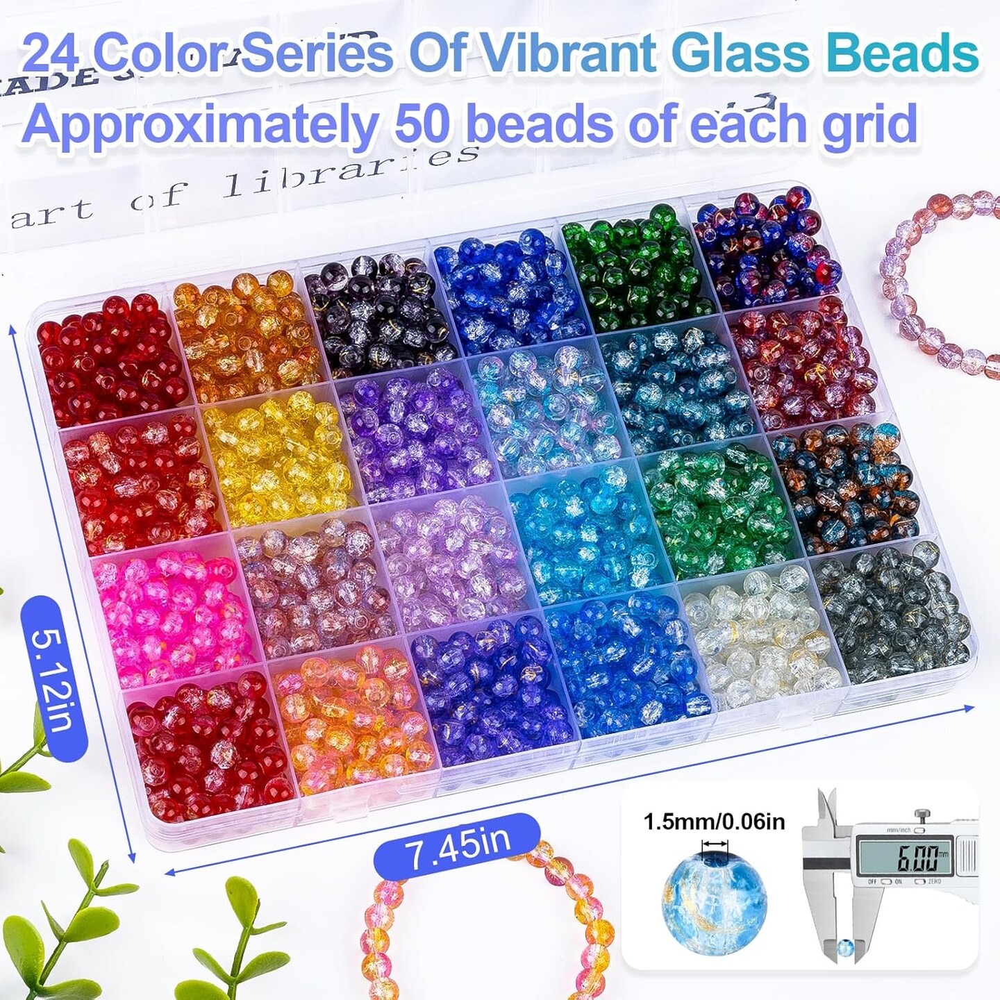 About 1200PCS 6mm Floral Glass Beads Bracelet Making Kit,24 Assorted Color Series Colorful Crystal Beads for Bracelet and Jewelry Making and DIY Crafts,Friendship Bracelets