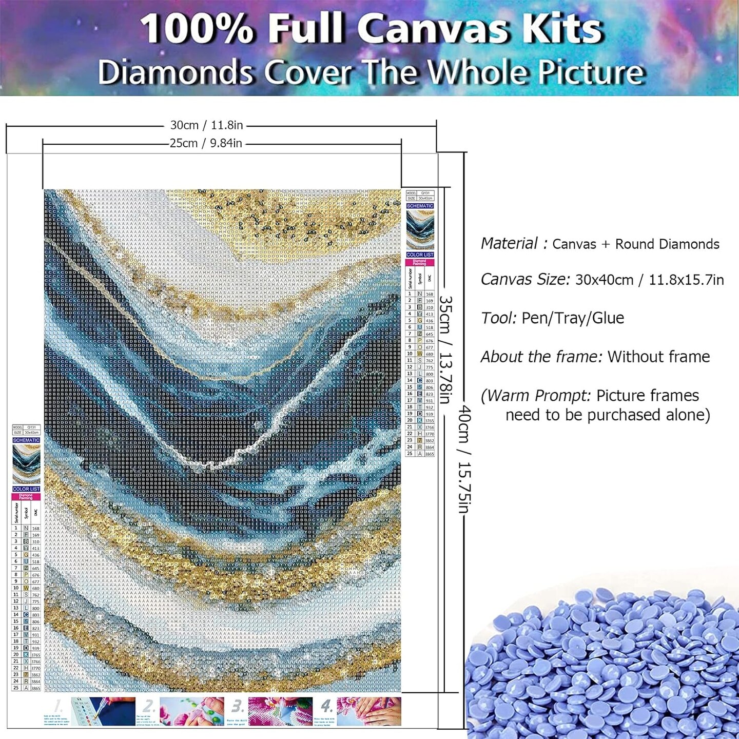 Abstract 5D Diamond Painting Kits for Adults Landscape Wave Paint with Diamonds Full Round Embroidery Pictures Arts Kits Diamond Art Kits for Home Wall Decor 11.8x15.7in