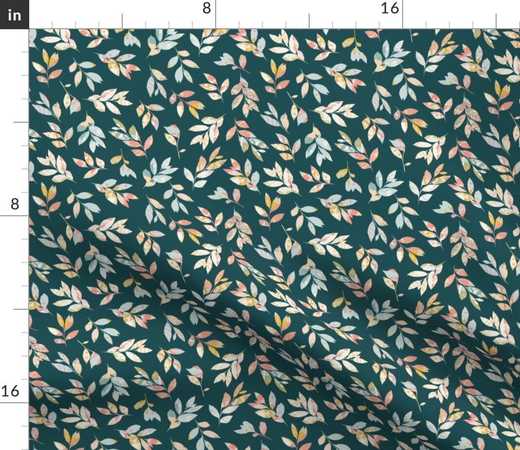 Abstract Botanical Blue Pink Yellow Small Scale Leaves Custom Printed Fabric by Spoonflower Various Fabrics by the Yard or Fat Quarter